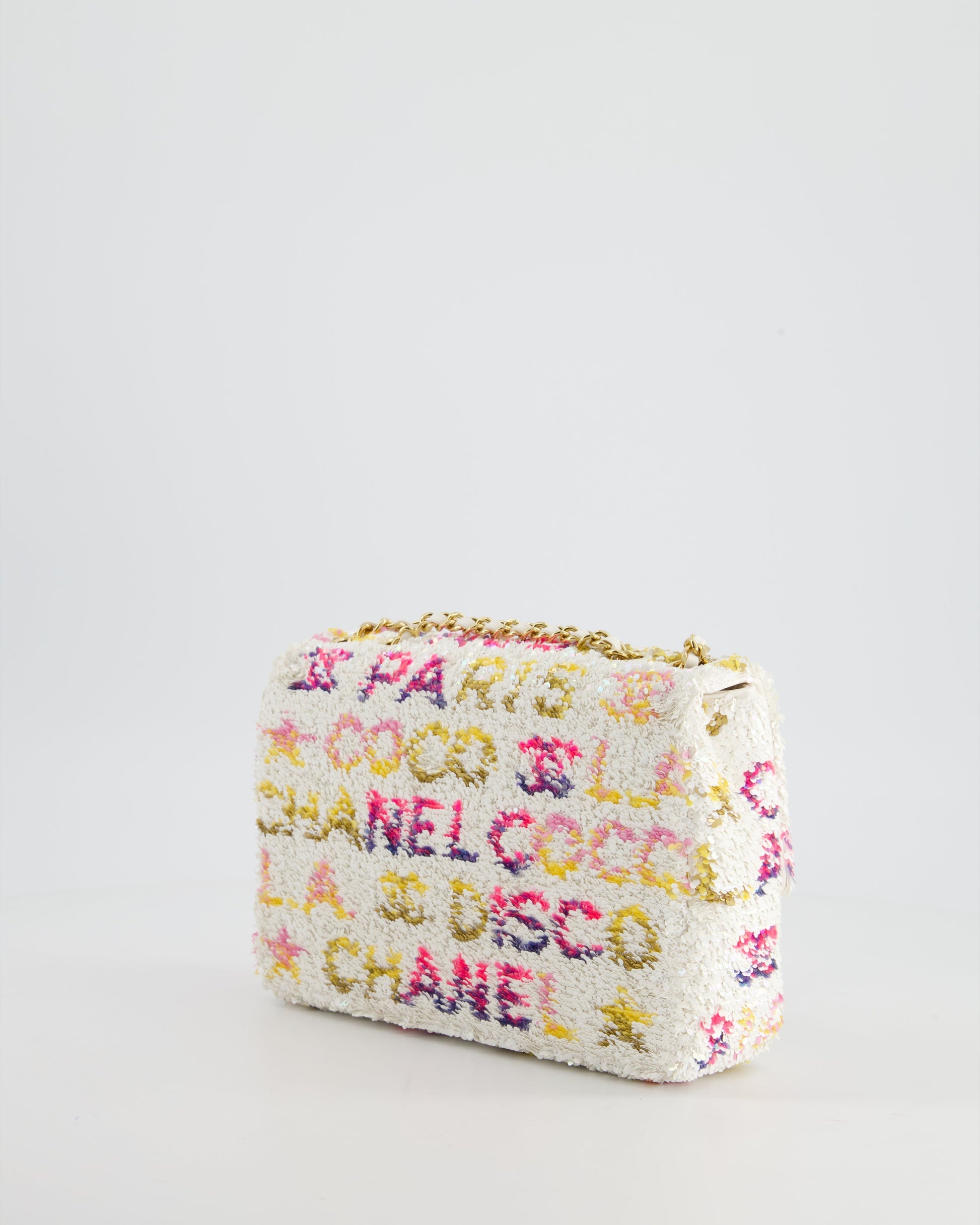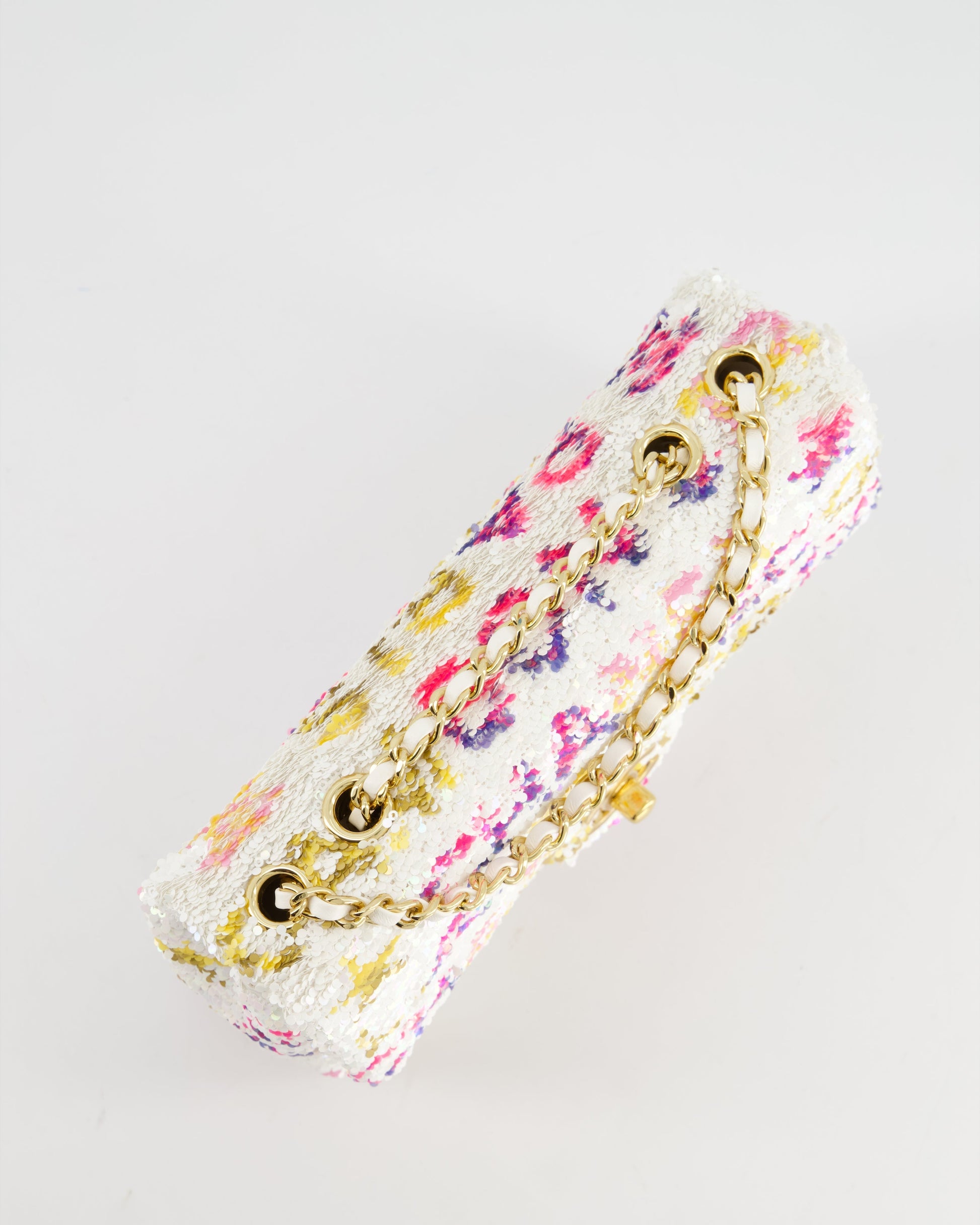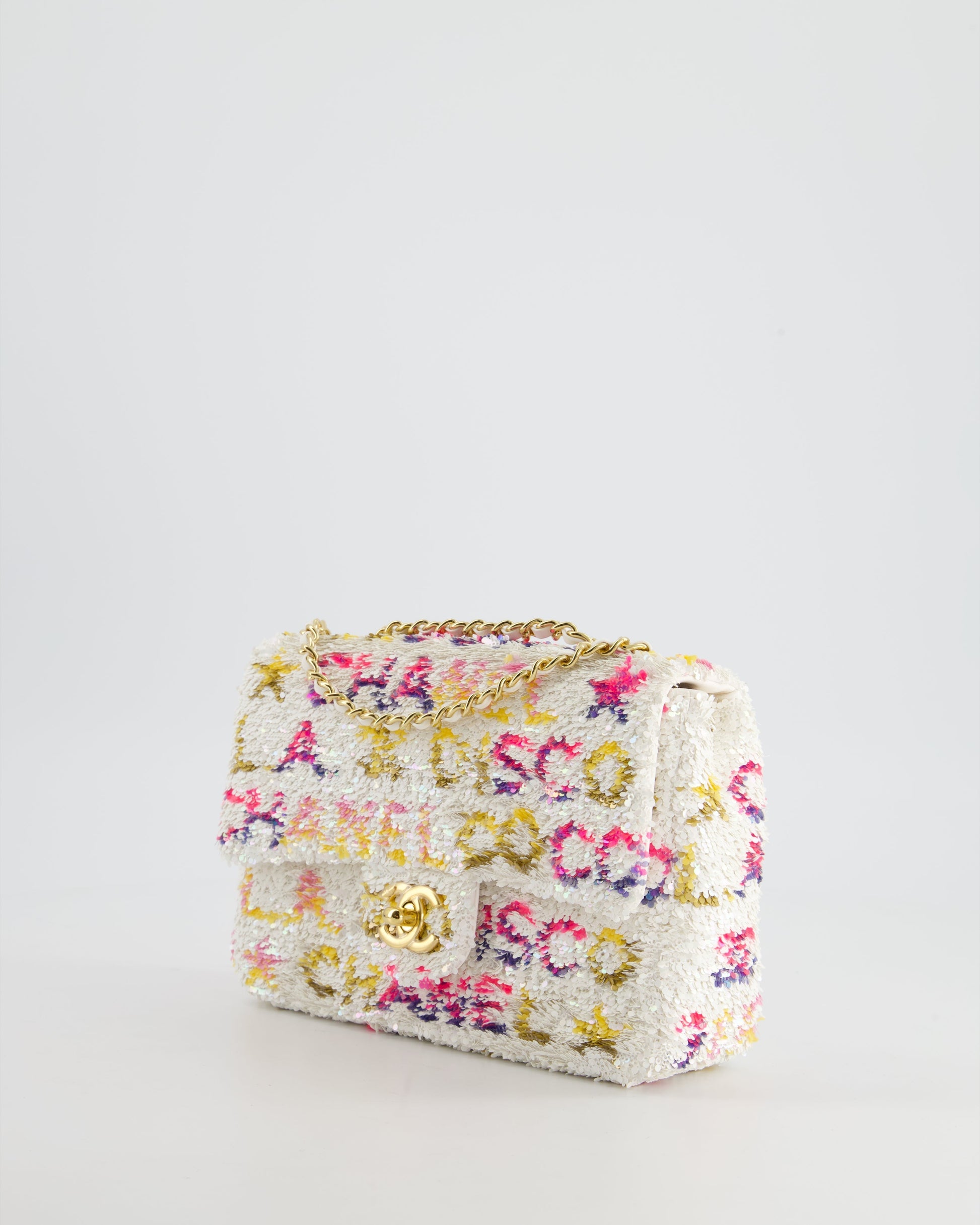 & CURRENT SEASON* Chanel Cruise 2024 White, Yellow, Pink and Blue Sequin Small Flap Bag with Gold Hardware