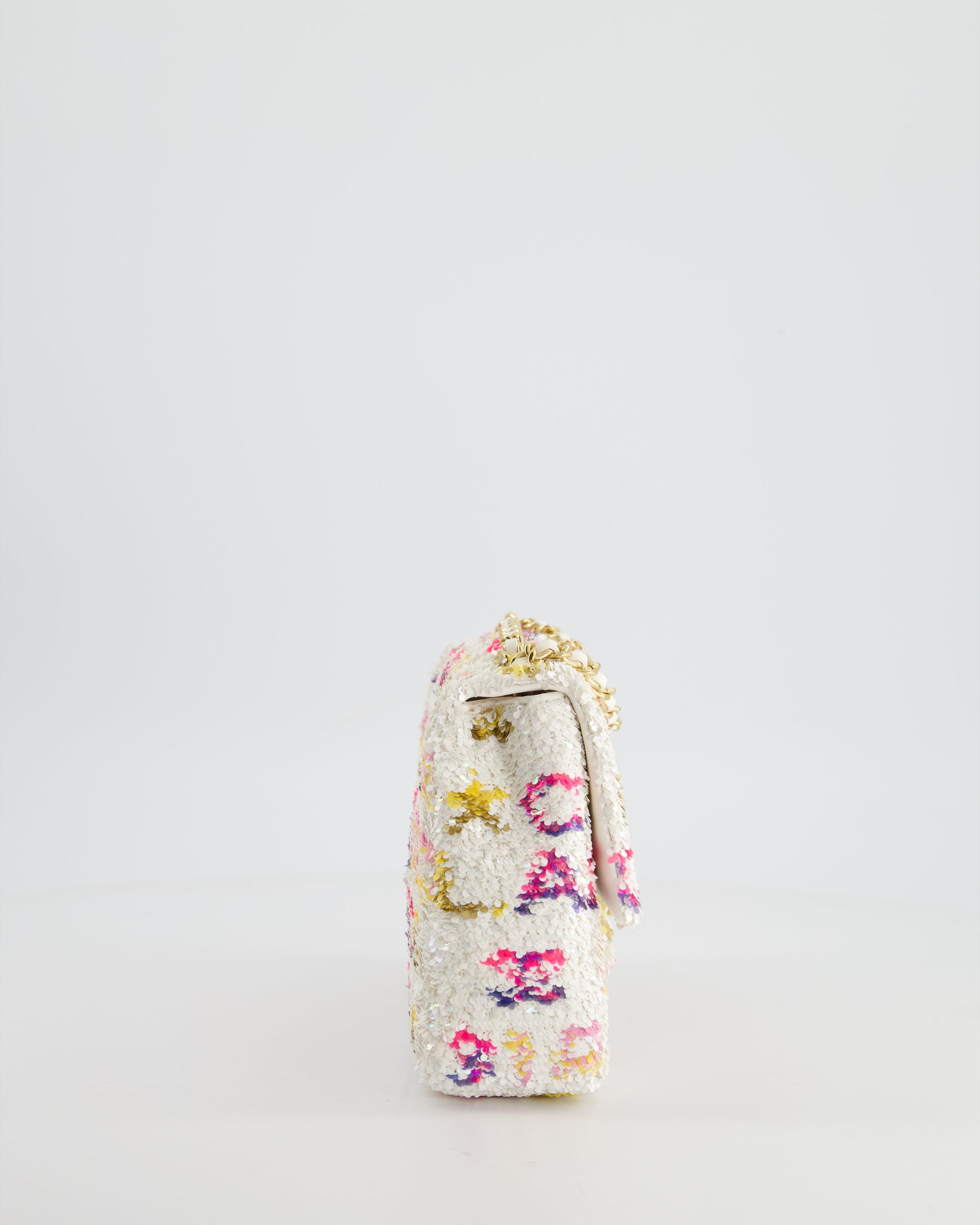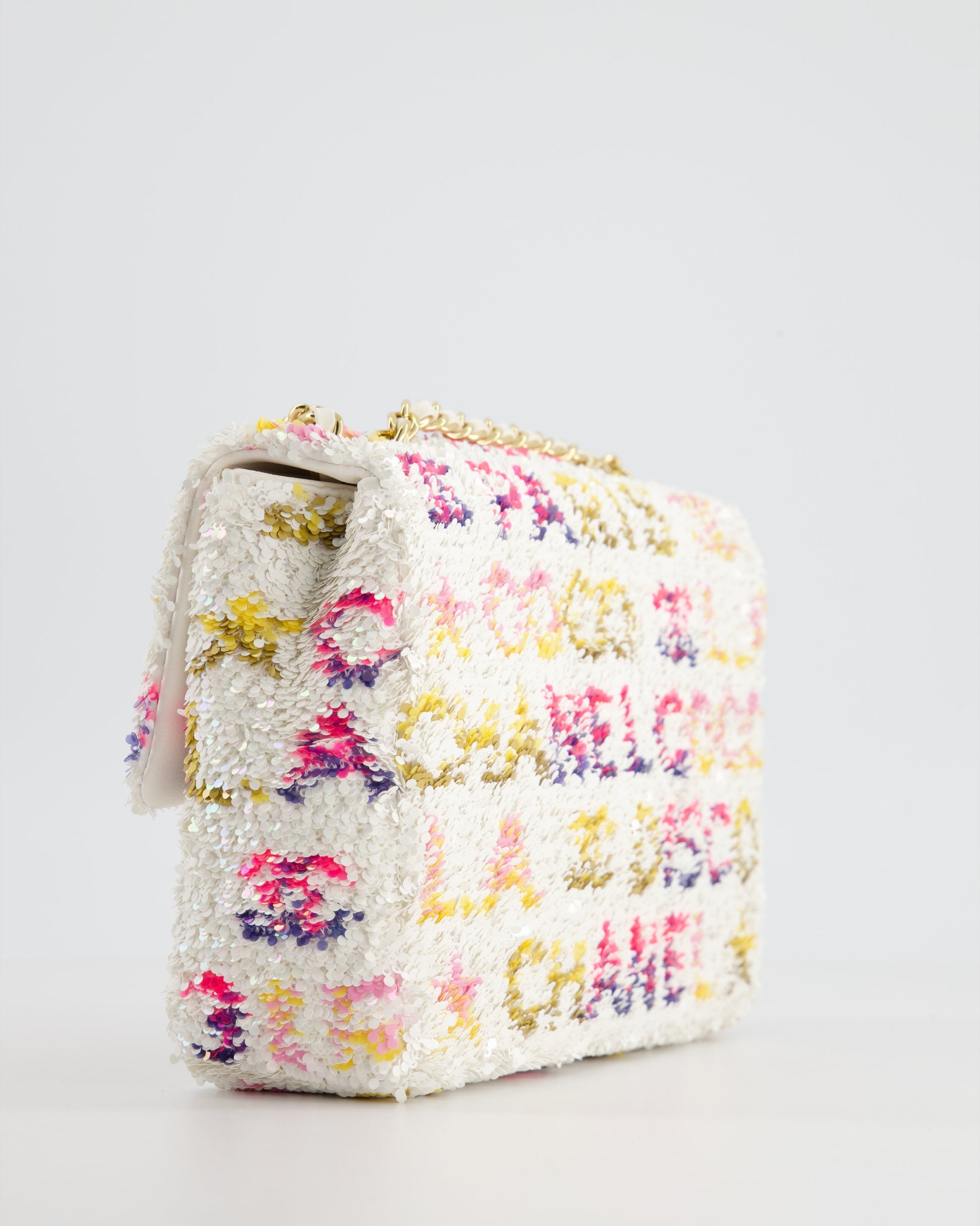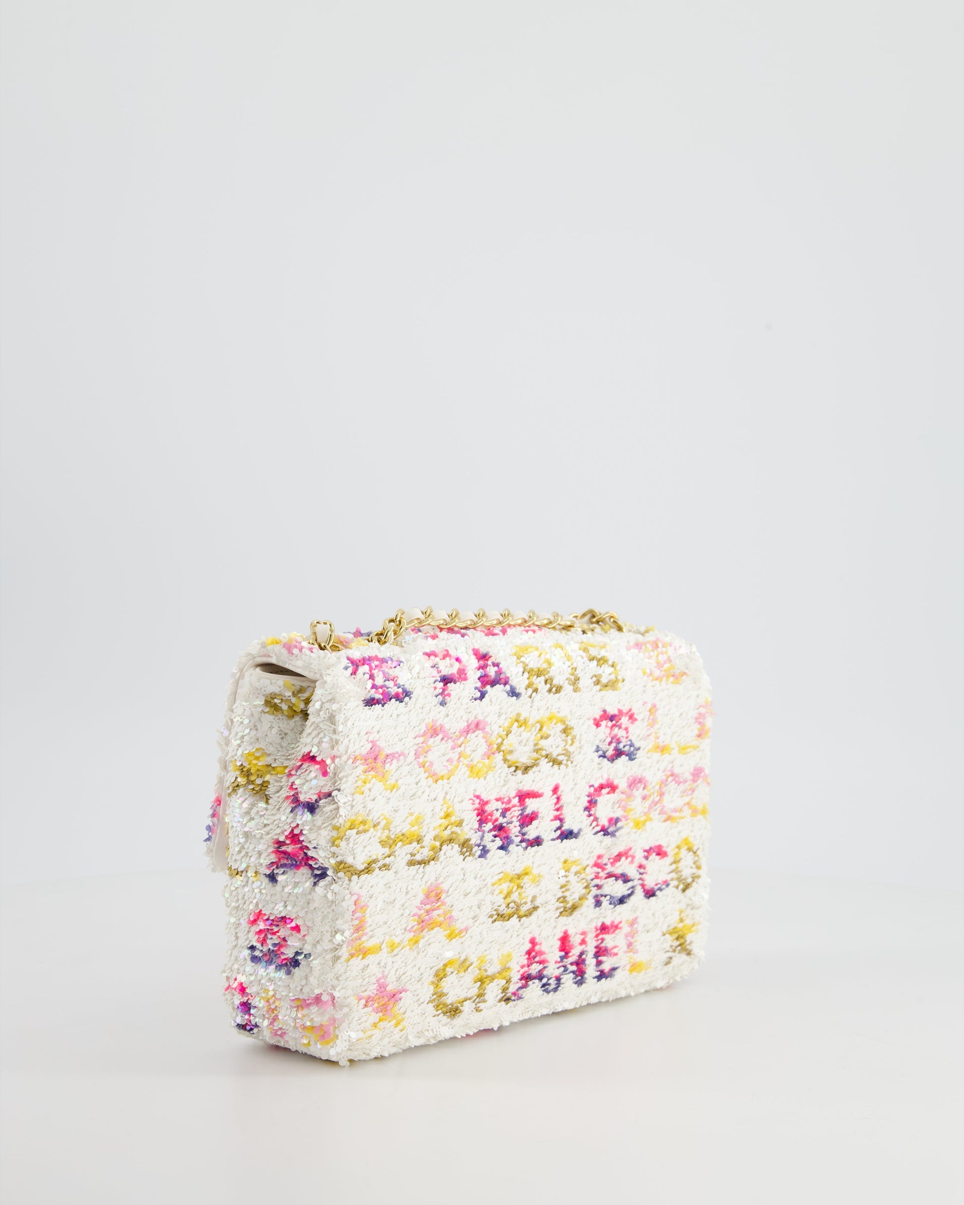 & CURRENT SEASON* Chanel Cruise 2024 White, Yellow, Pink and Blue Sequin Small Flap Bag with Gold Hardware