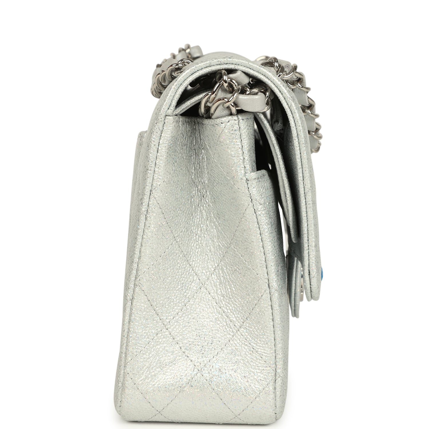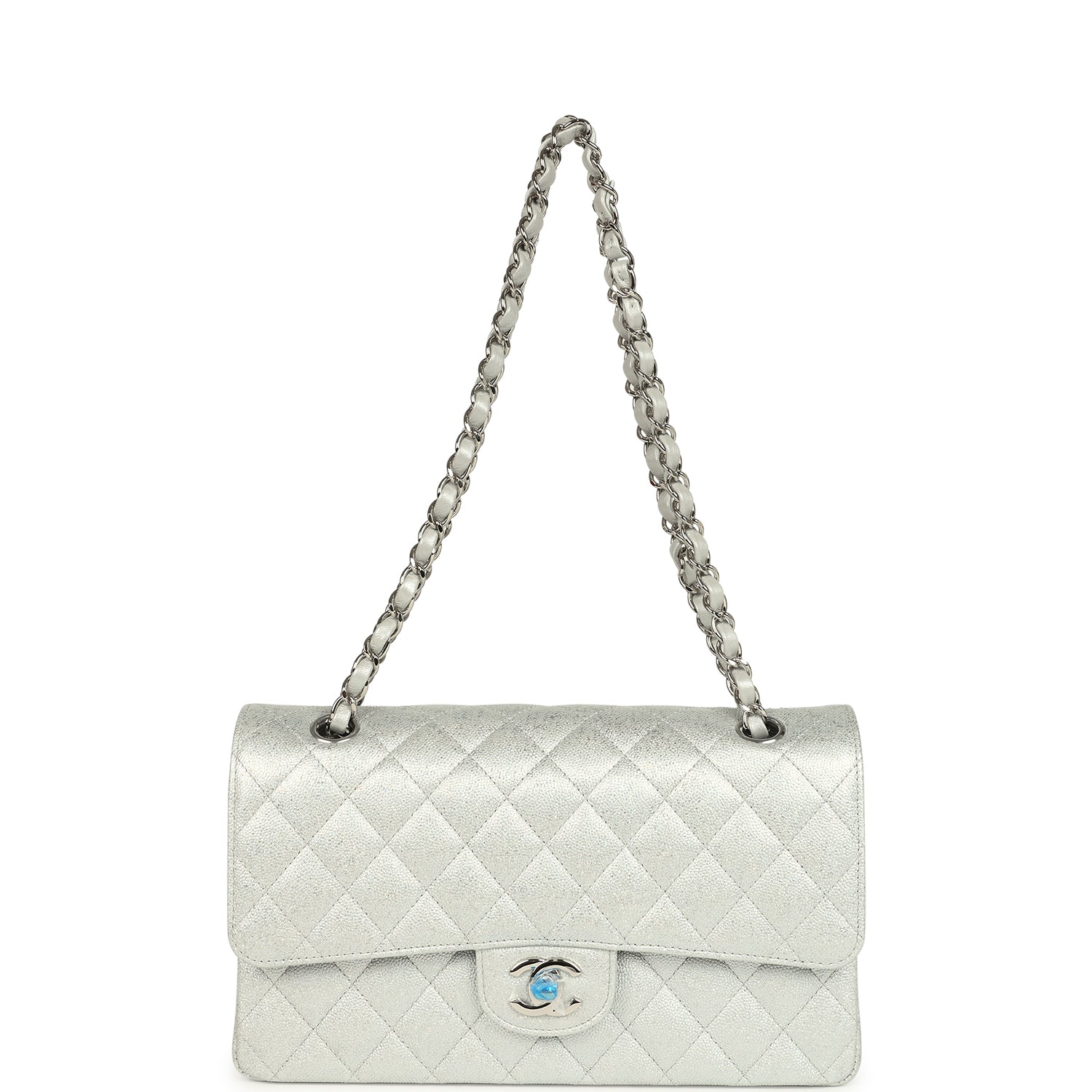 Chanel Medium Classic Double Flap Silver Glitter Caviar Silver Hardware
