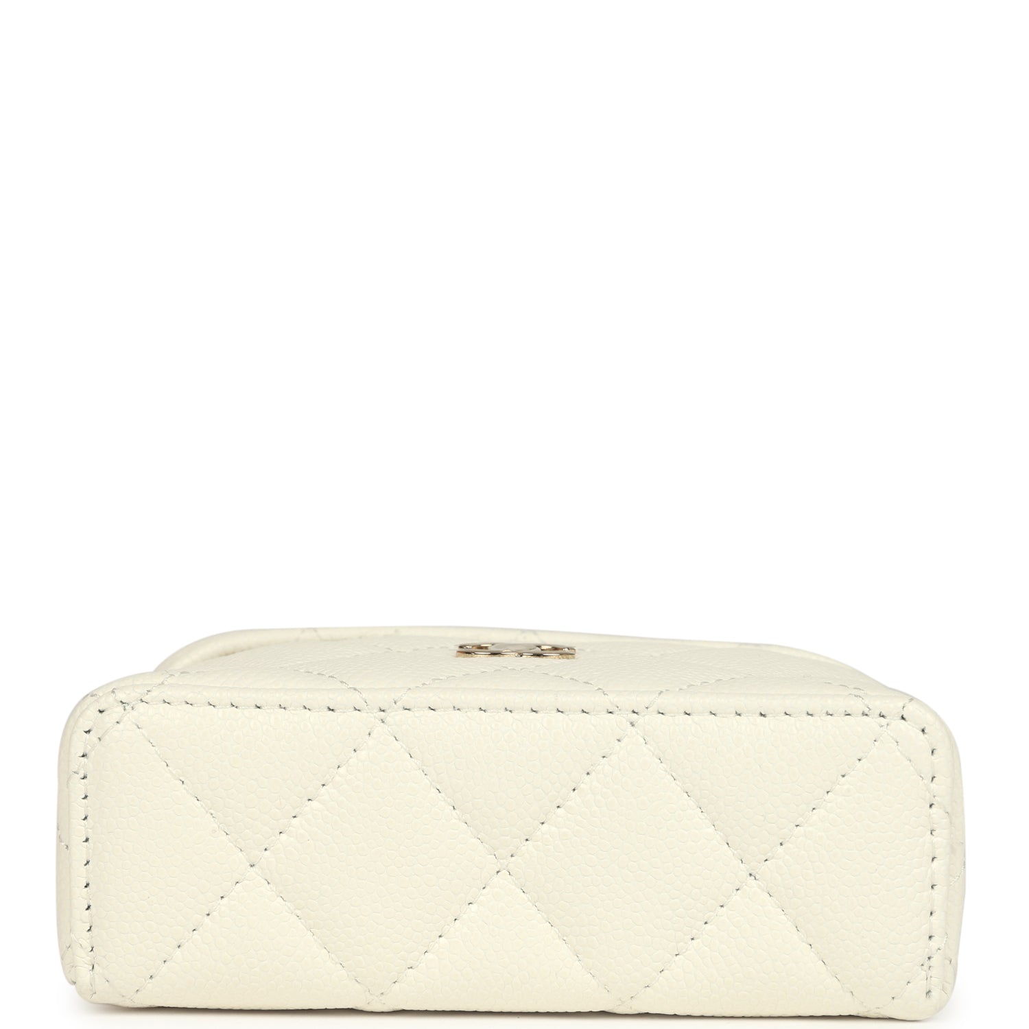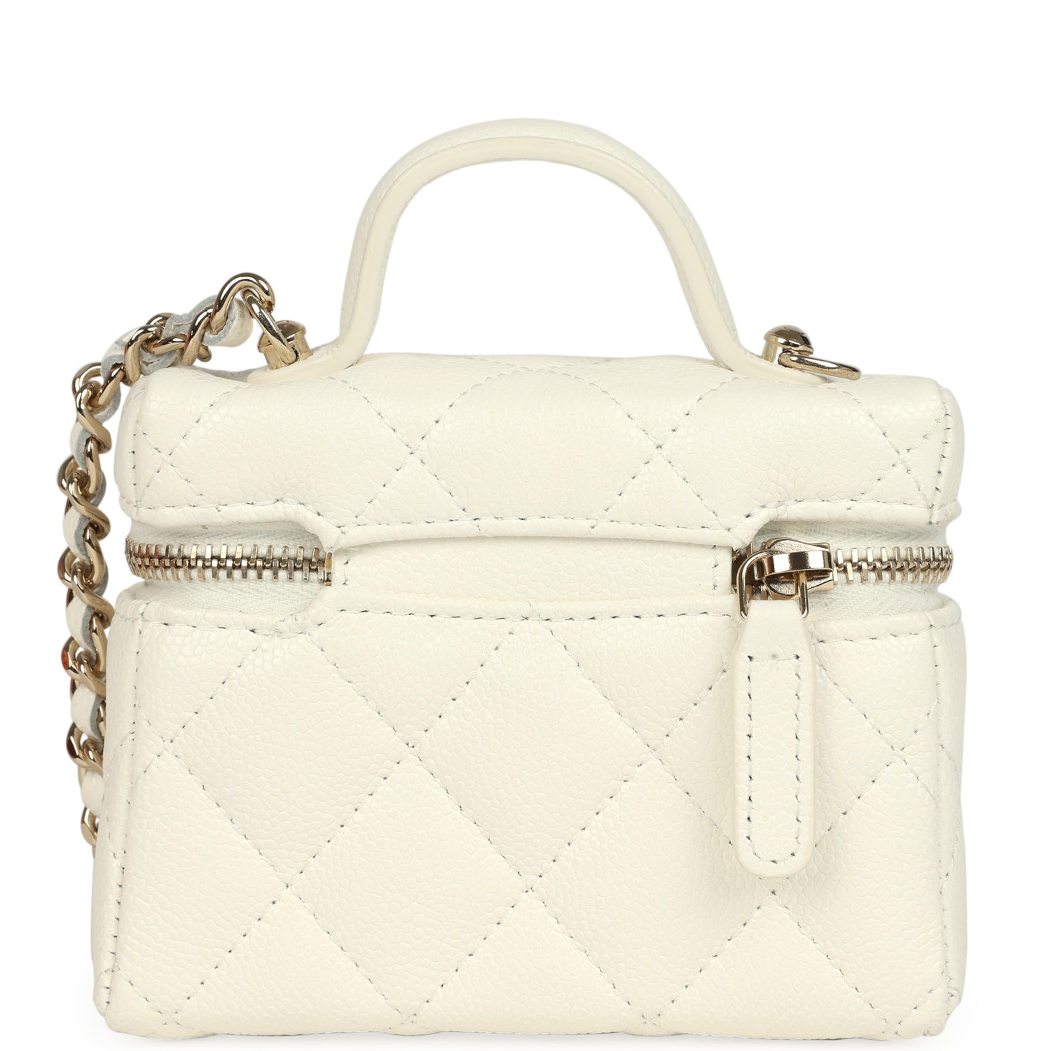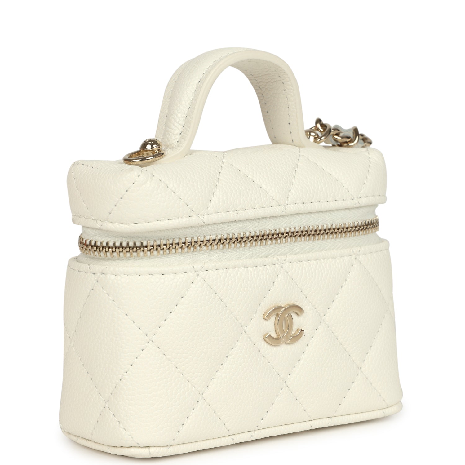 Chanel Micro Top Handle Vanity Case Bag Charm White Shiny Caviar Light Gold Hardware