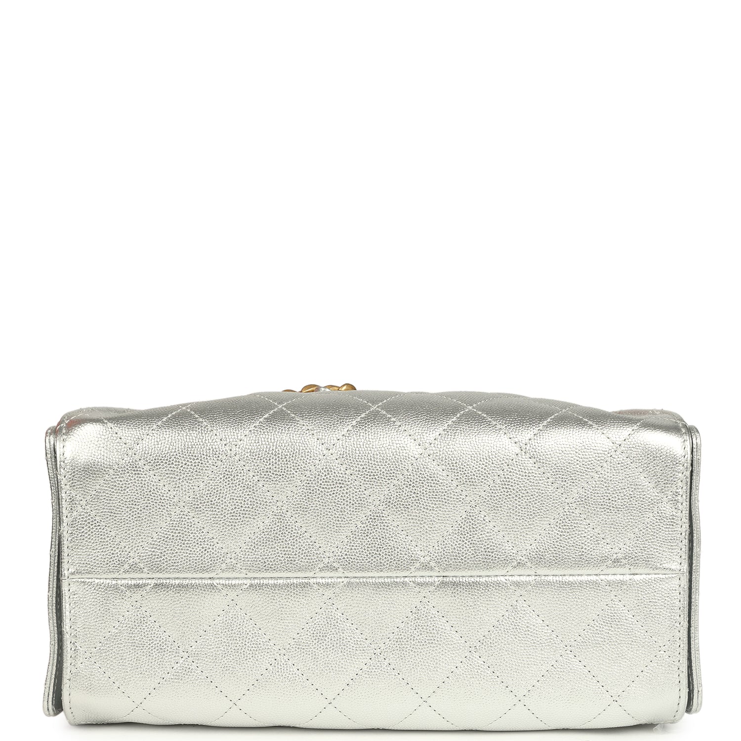 Chanel Small 25 Hobo Bag Metallic Silver Caviar Antique Gold Hardware