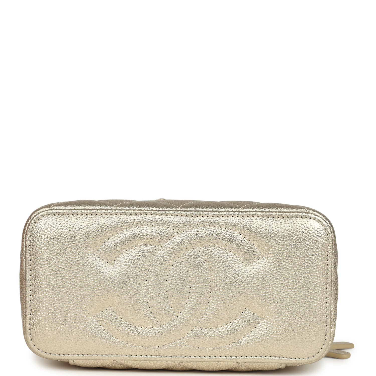 Chanel Small Classic Vanity Case Light Gold Metallic Caviar Brushed Light Gold Hardware