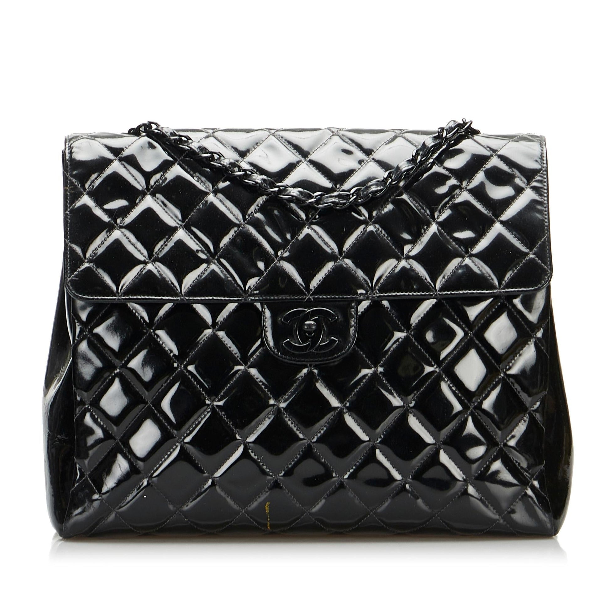Chanel So Black Matelasse Patent Leather Single Flap Bag (SHG-eJHtIM)