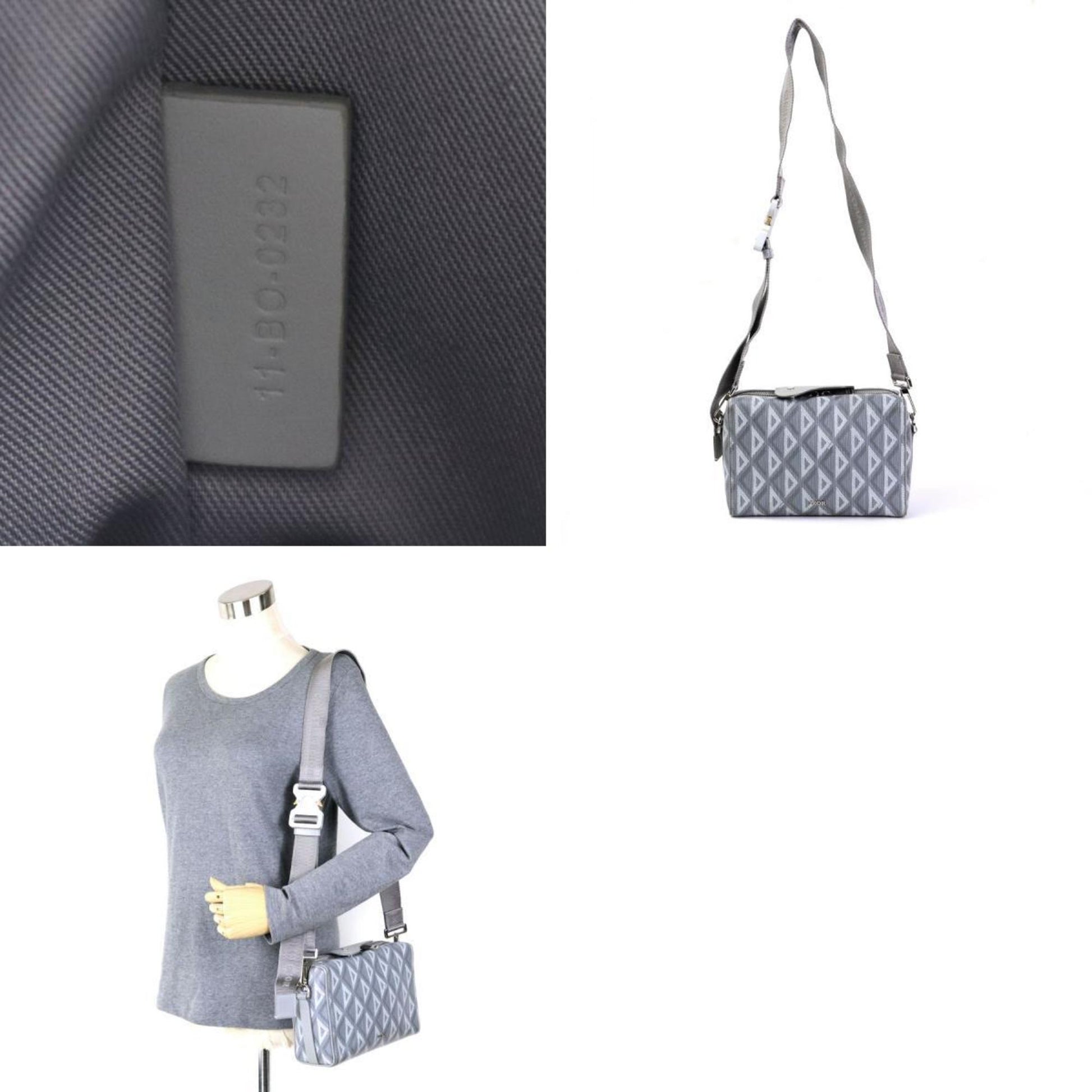 CHRISTIAN DIOR diagonal shoulder bag LINGOT22 Rango 22/CD diamond canvas gray men's