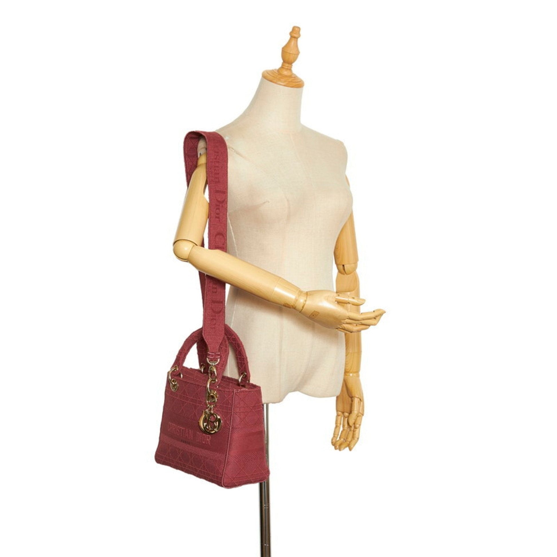 Christian Dior Dior Canage Lady Delight Handbag Shoulder Bag Pink Canvas Ladies