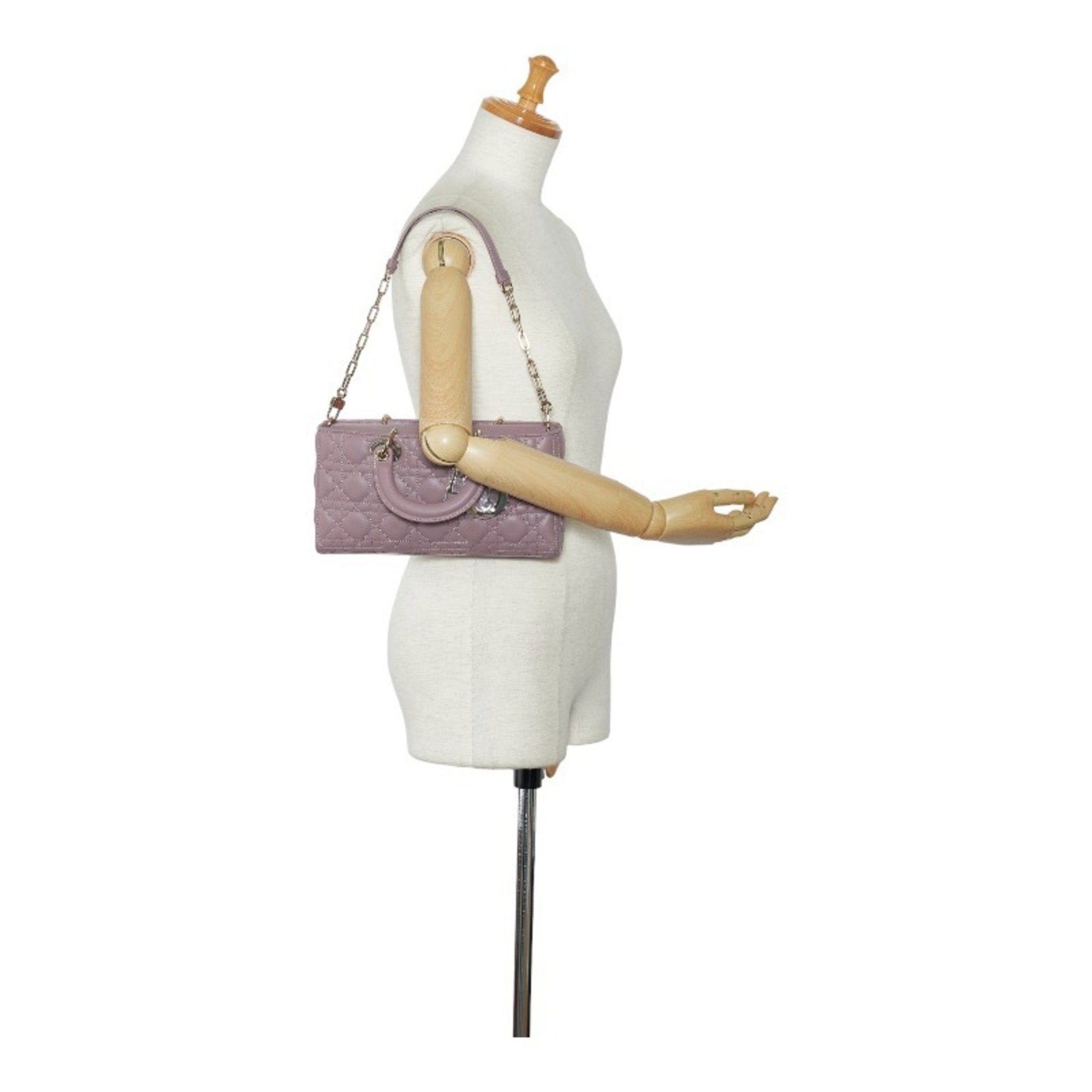 Christian Dior Dior LADY D-JOY Cannage Handbag Shoulder Bag Medium Pink Leather Ladies