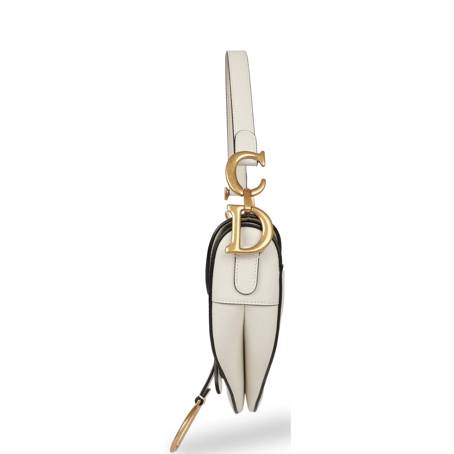 Christian Dior Saddle Bag White Grained Calfskin Gold Hardware