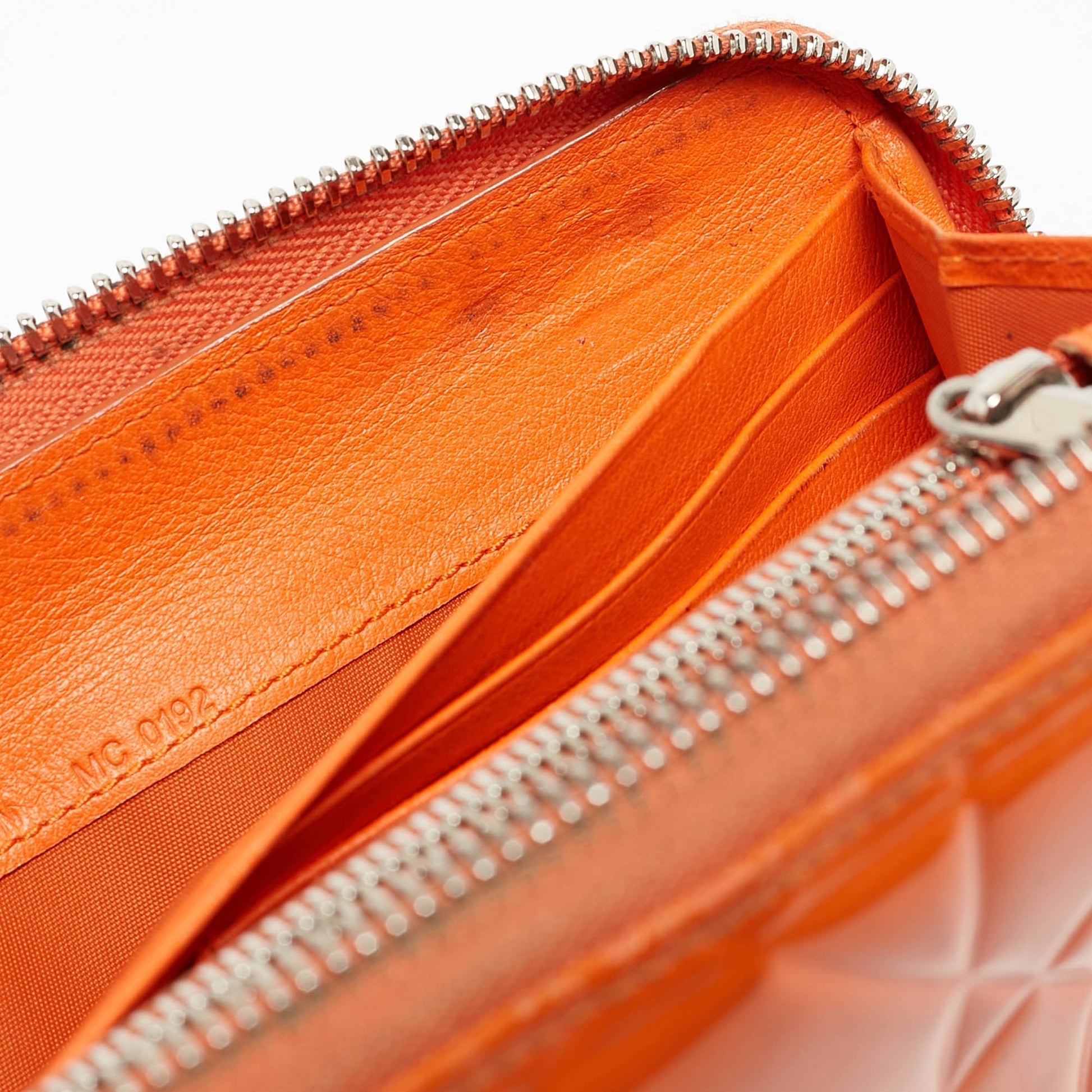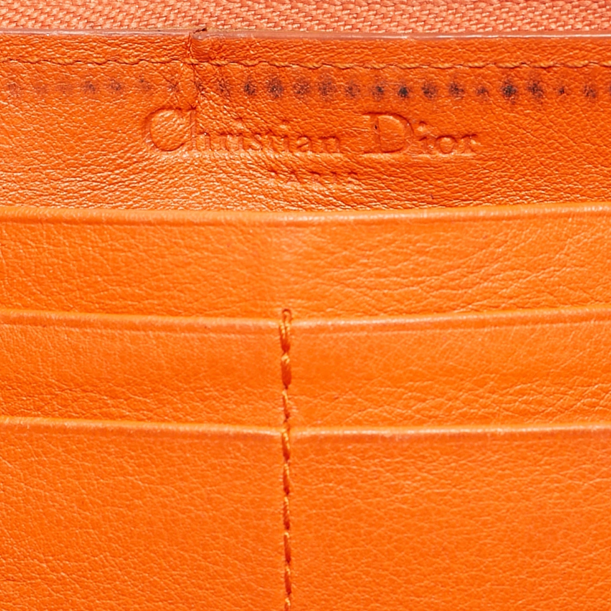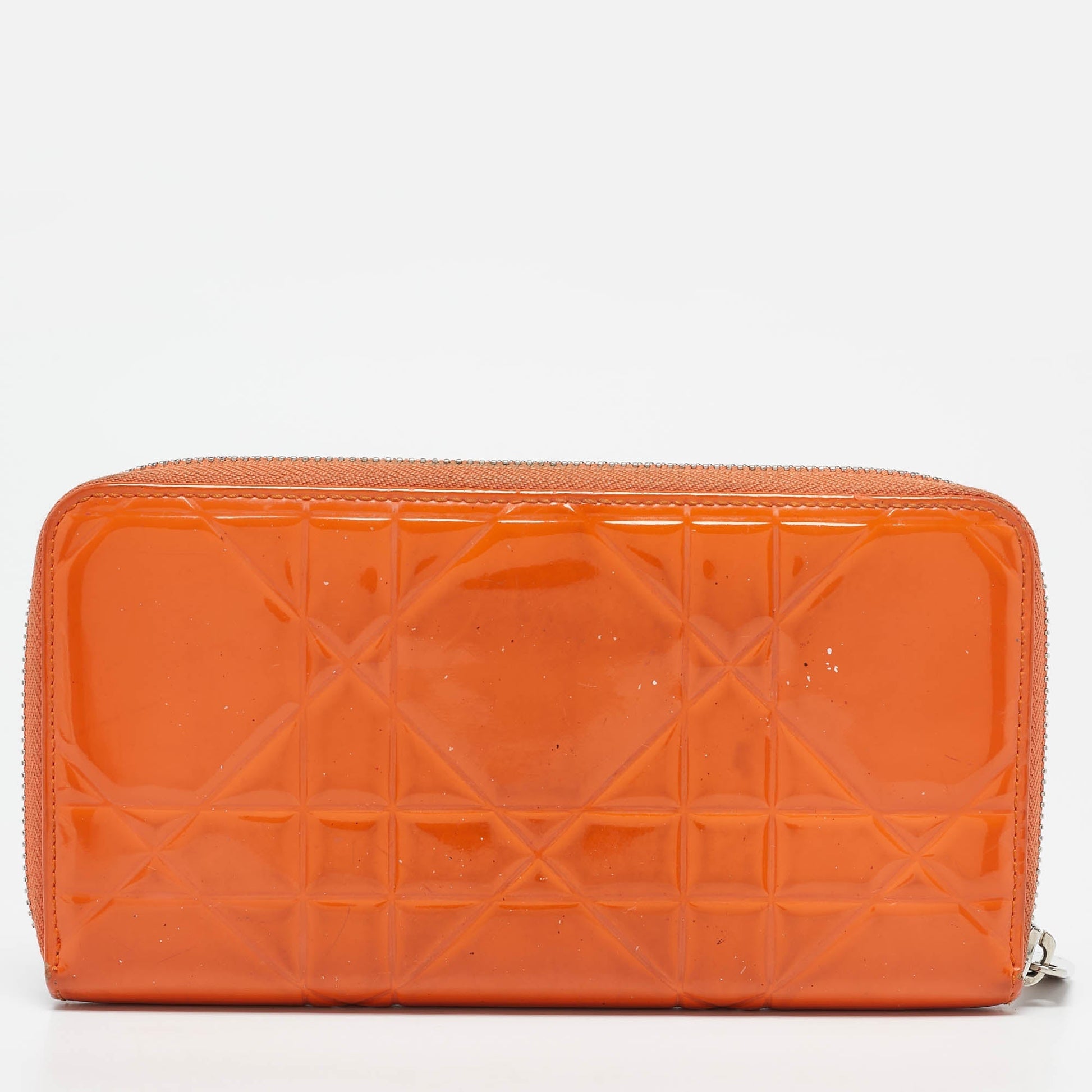 Dior Orange Patent Leather Lady Dior Zip Around Wallet