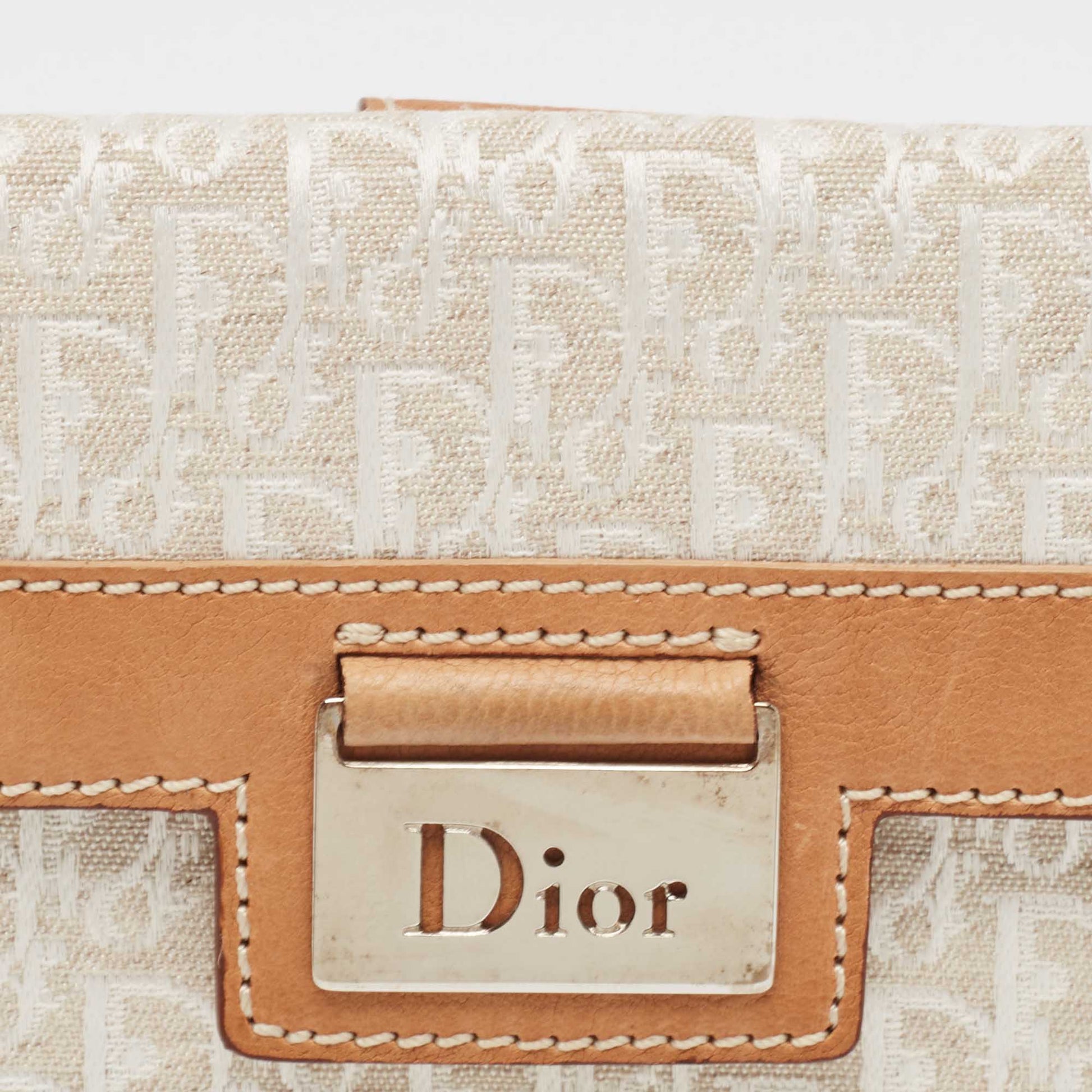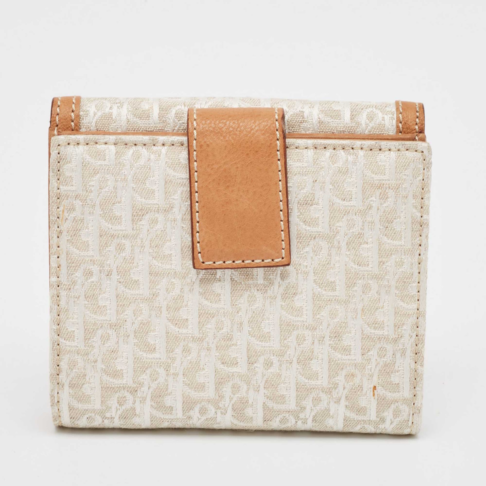 Dior White/brown Oblique Canvas And Leather Street Chic Compact Wallet