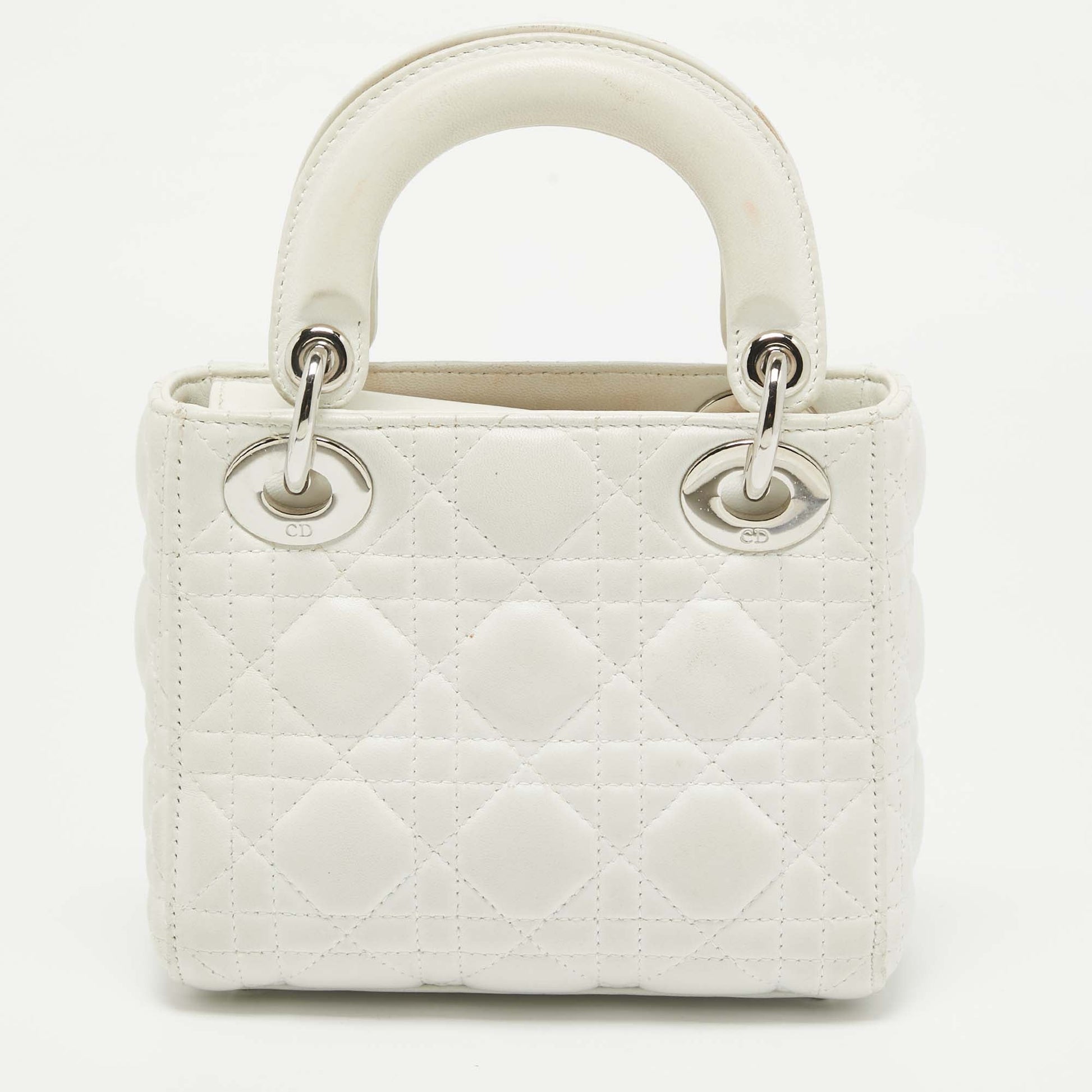 Dior White Cannage Leather Mini Lady Dior Tote