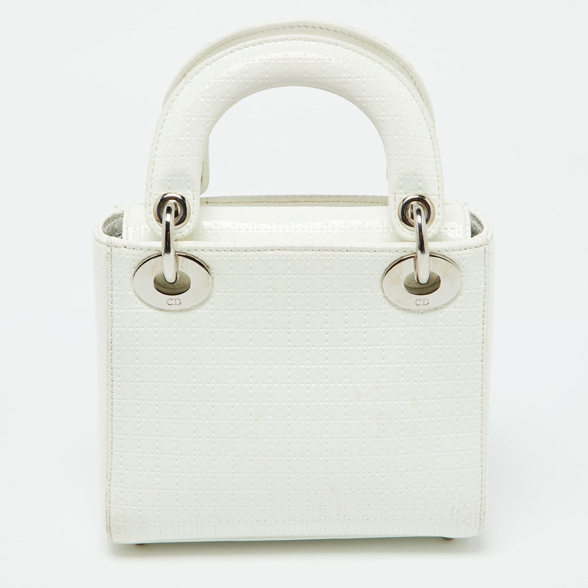 Dior White Microcannage Patent Leather Mini Lady Dior Tote