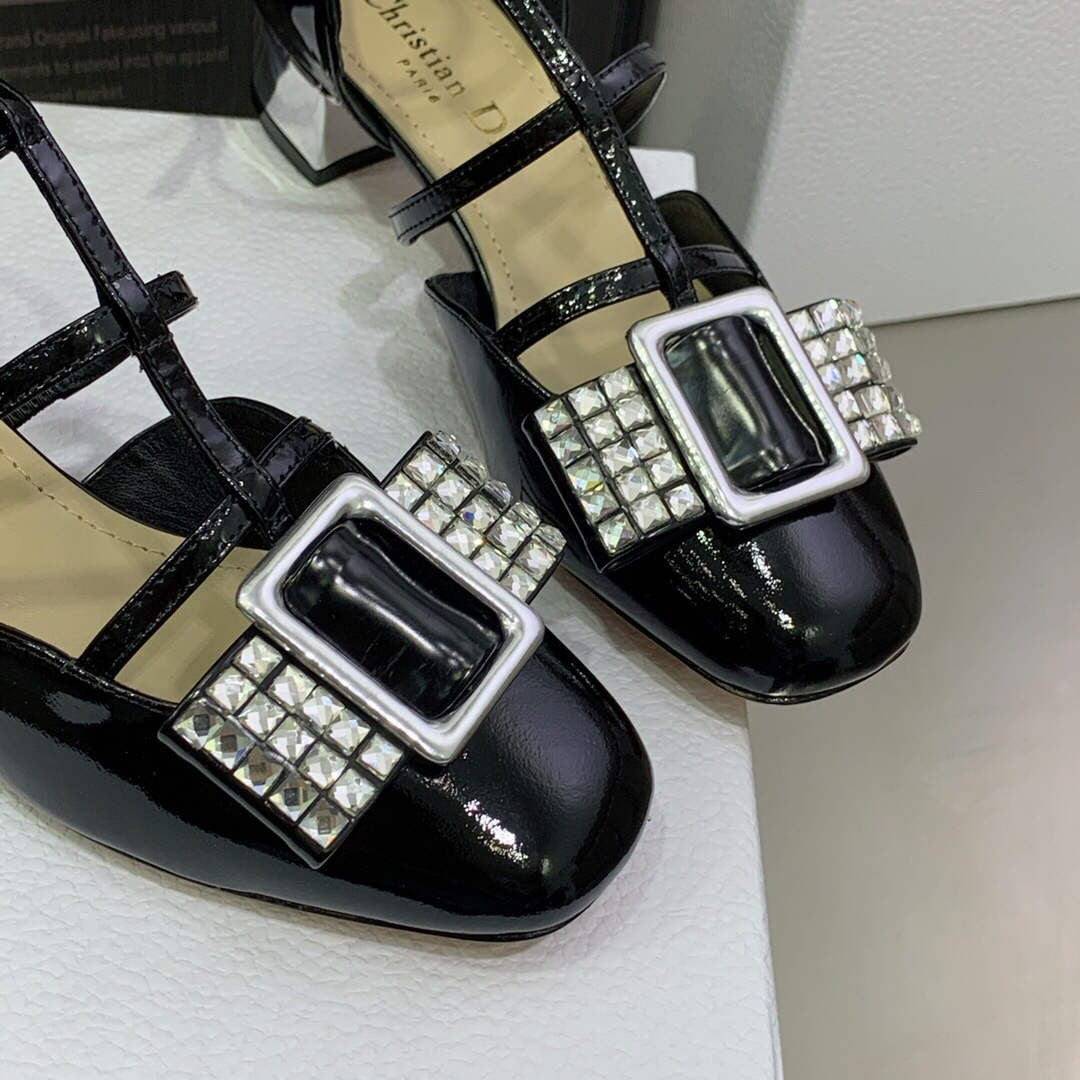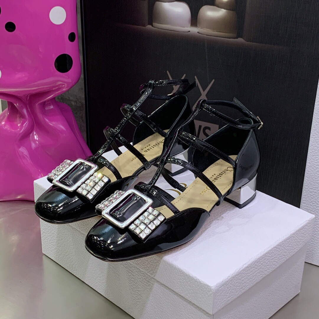 The La Parisienne Dior ballerina flat, a staple of the fashion show, plays on the codes of modernity and retro elegance. The black patent calfskin design has a slightly square toe and is further embellished with a silver-tone mirror-effect ‘CHRISTIAN DIOR PARIS’ signature plate. The strapped shoe will lend the finishing touch to any outfit.