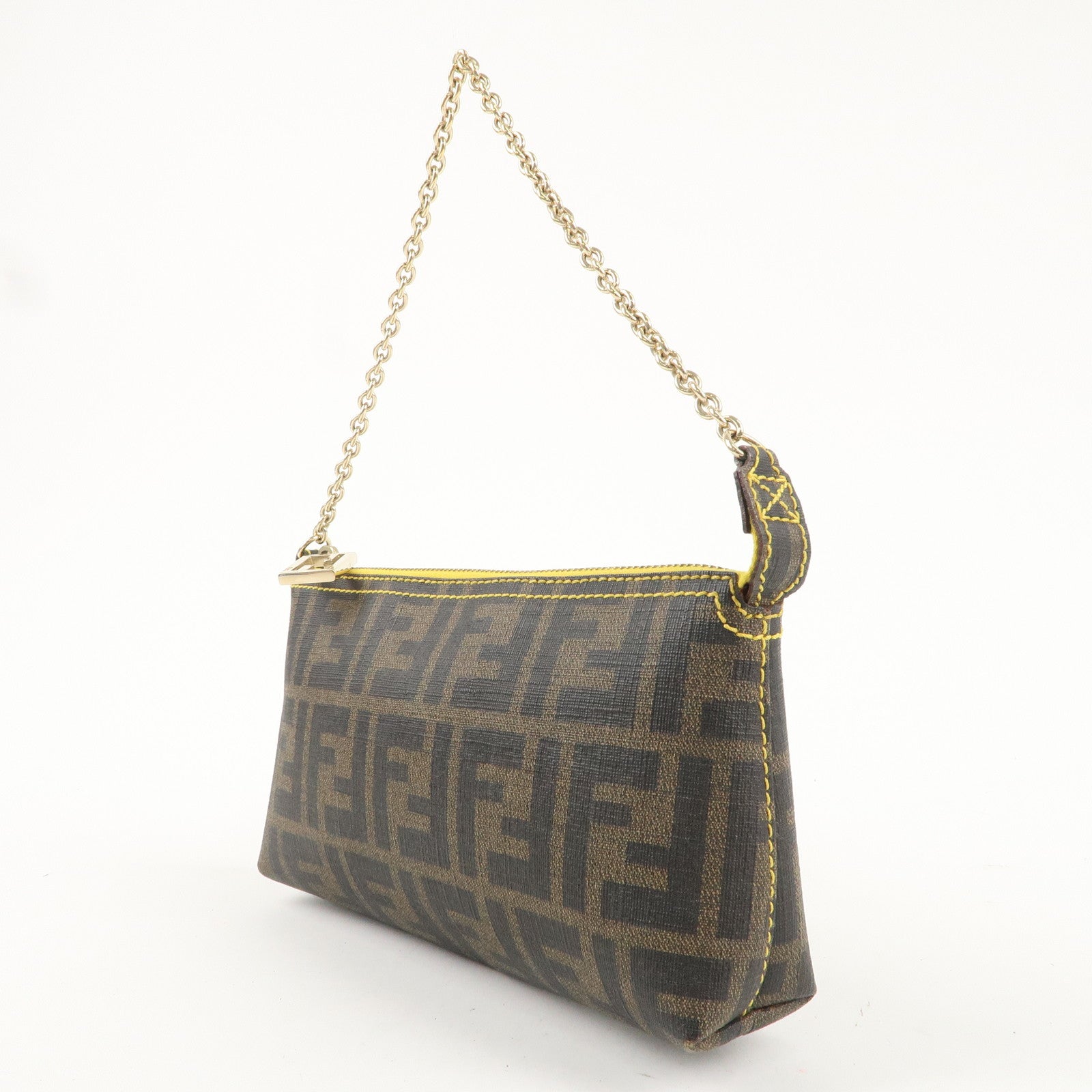 FENDI Zucca PVC Accessory Chain Pouch Brown Black Yellow 8BR592