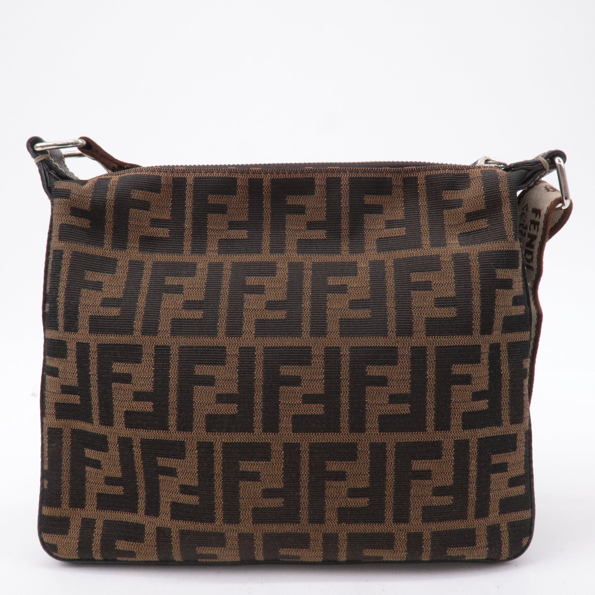 FENDI Zucca Selleria Canvas Leather Shoulder Bag Brown 8BT092
