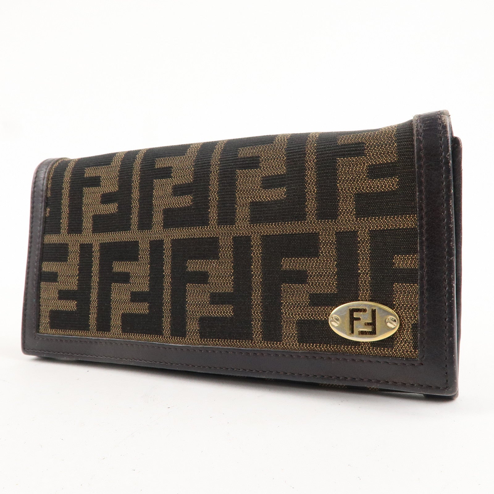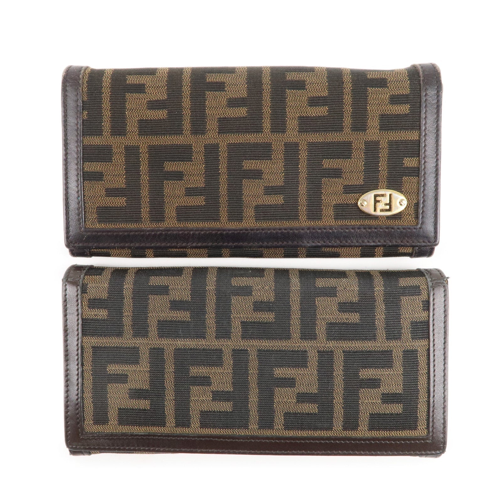 FENDI Zucca Set of 2 Canvas Leather Bi-fold Wallet Brown Black