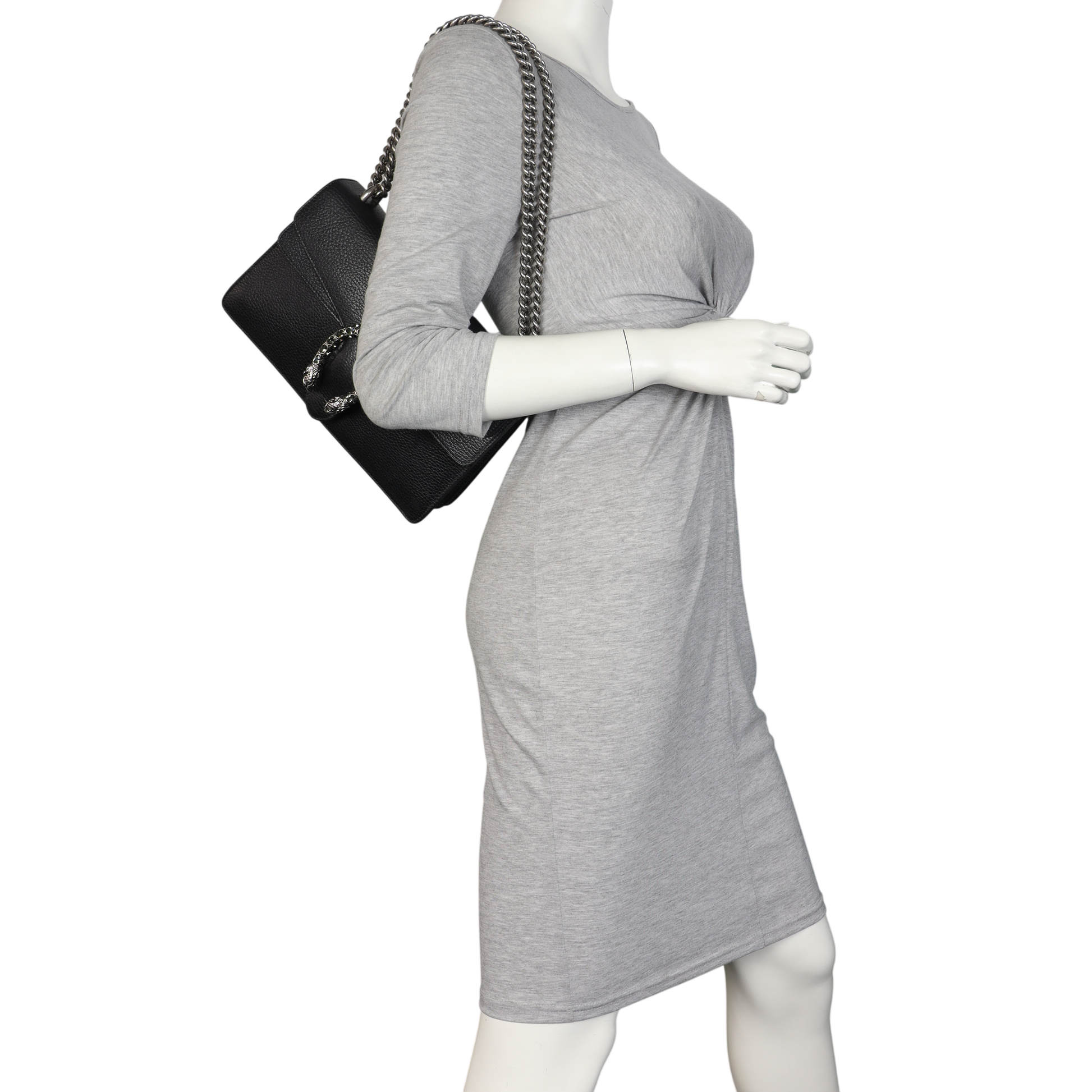 The Gucci Dionysus Shoulder Bag is a striking statement piece featuring a structured silhouette and iconic tiger head spur detail, blending mythological flair with modern luxury for standout day-to-night style.