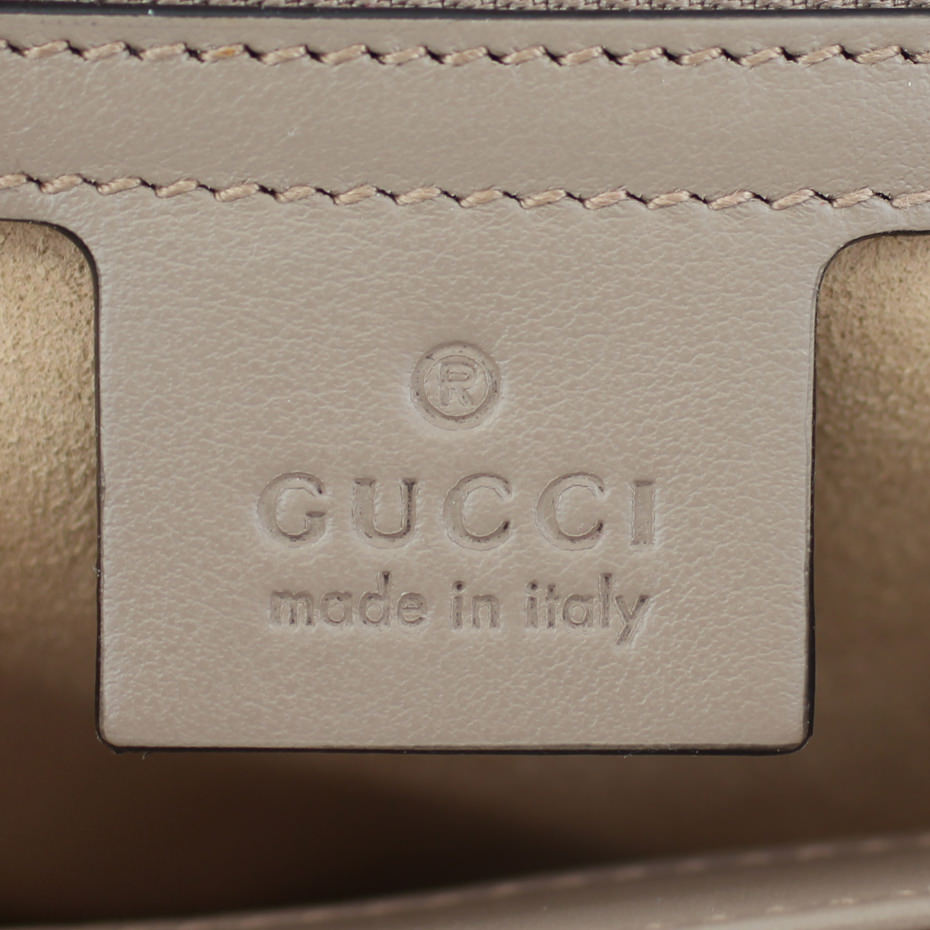 Gucci’s small GG Marmont chain shoulder bag has a softly structured shape and an oversized flap closure with Double G hardware. The sliding chain strap can be worn multiple ways, changing between a shoulder and a top handle bag. Crafted from matelassé chevron leather with a heart on the back.