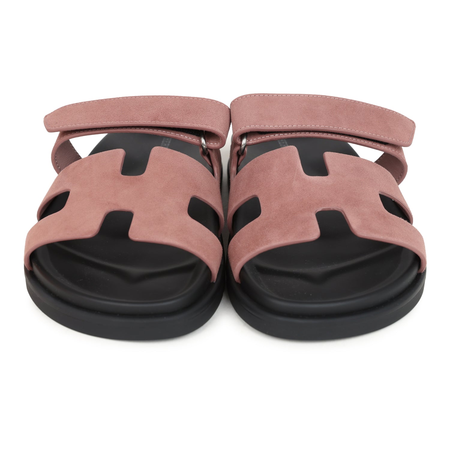 Hermes Chypre Techno Sandal Rose Antique Suede Palladium Hardware 38 EU