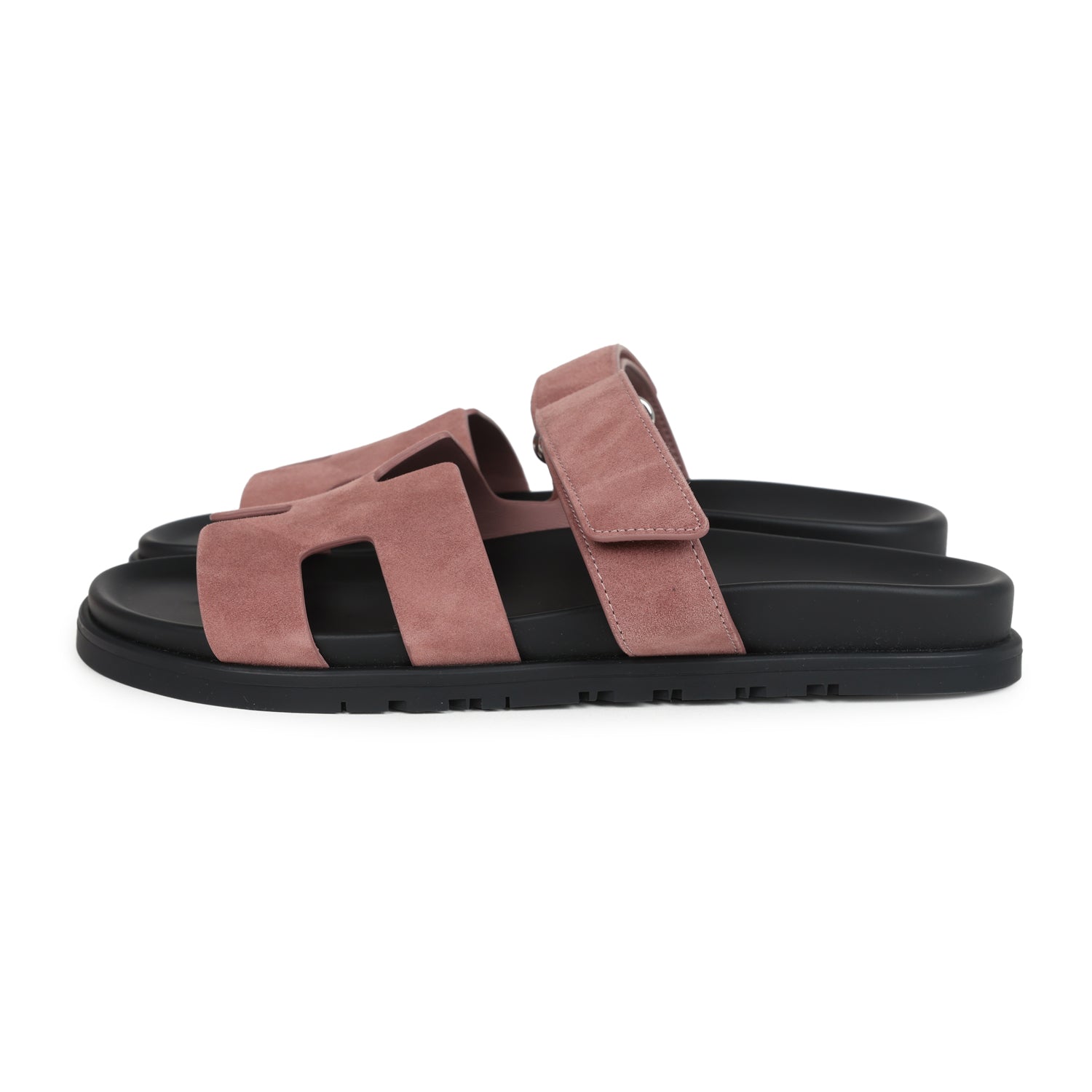 Hermes Chypre Techno Sandal Rose Antique Suede Palladium Hardware 39.5 EU