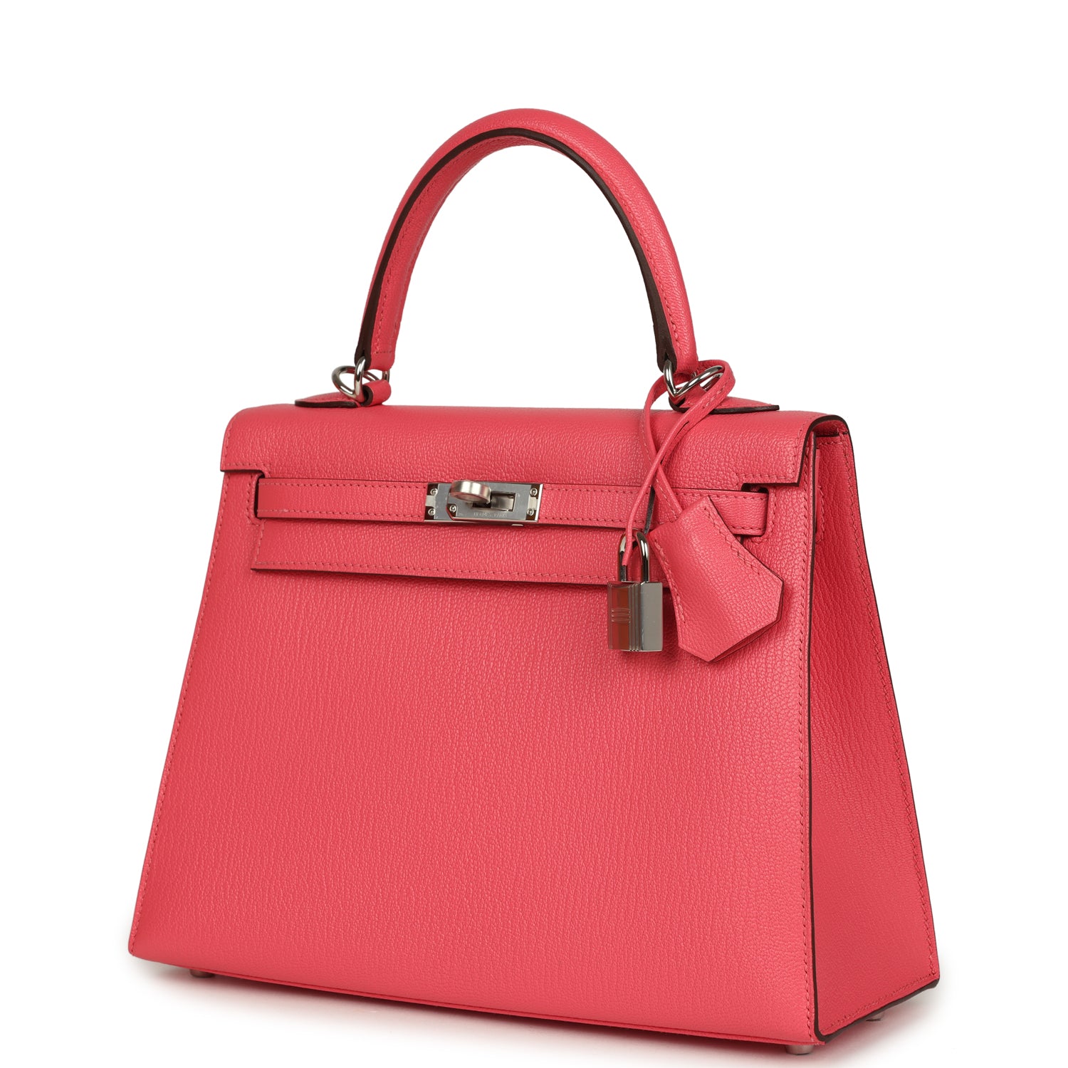 Hermes Kelly Sellier 25 Rose Lipstick Chevre Mysore Palladium Hardware
