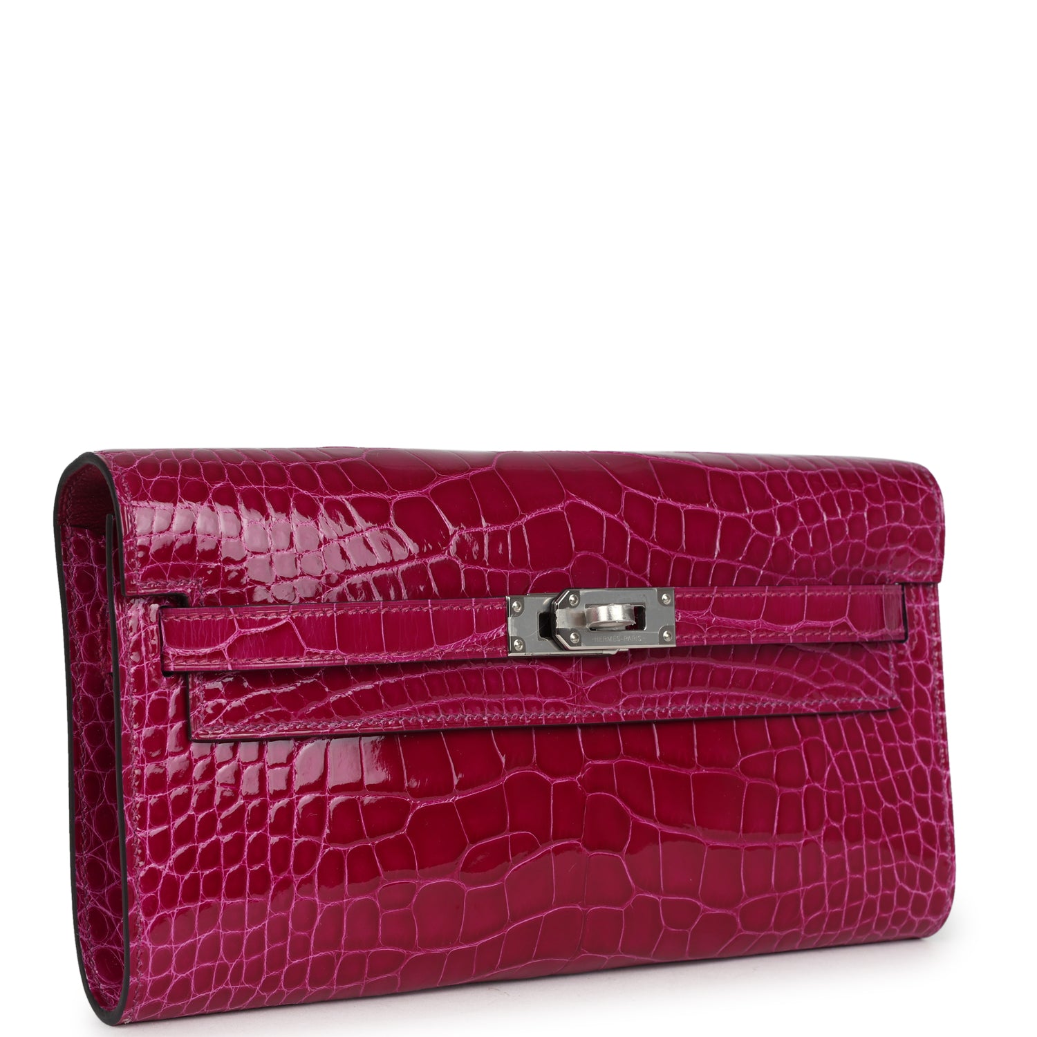 Hermes Kelly Wallet To Go Rose Pourpre Shiny Alligator Palladium Hardware