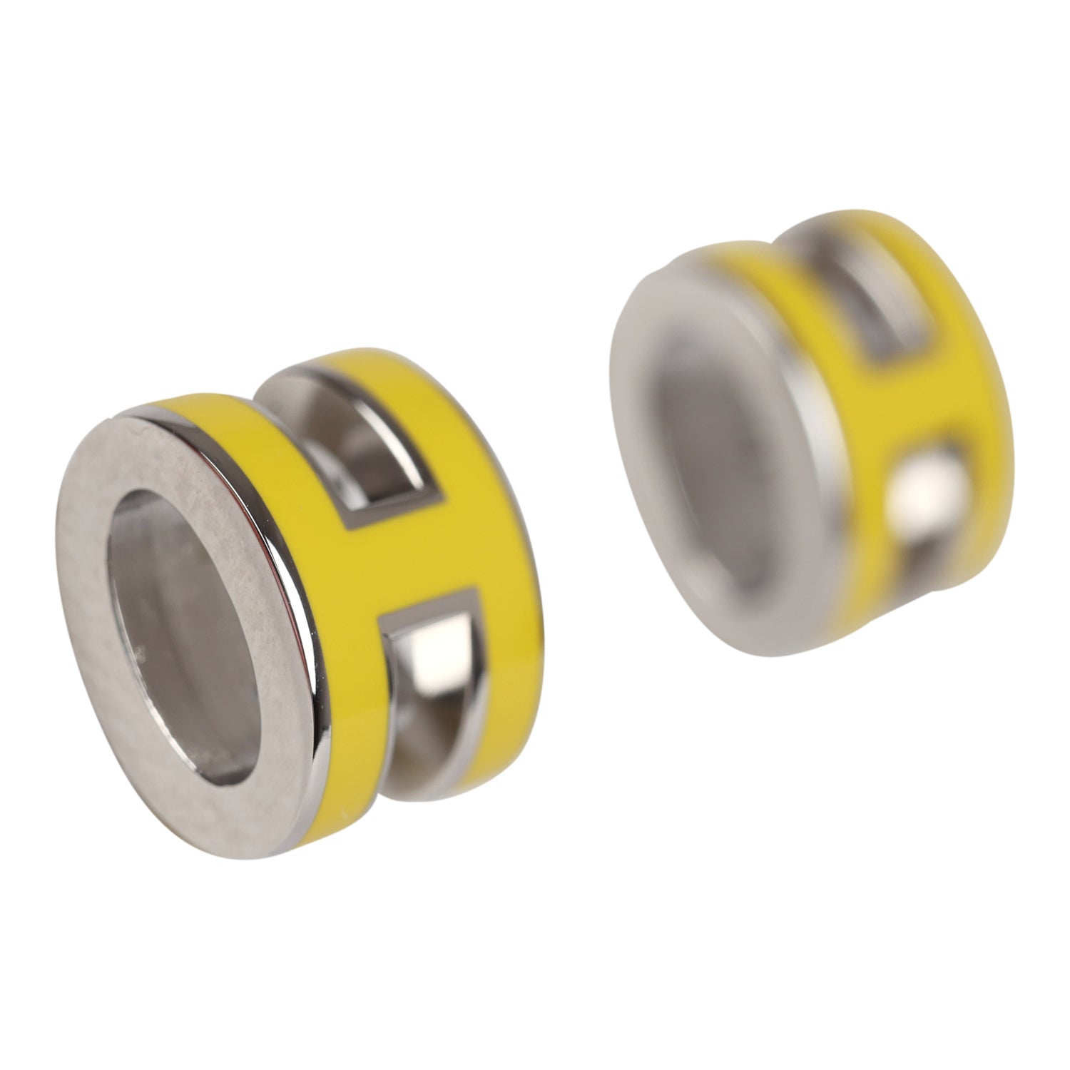 Hermes Mini Pop H Earrings New Lime Enamel Palladium Hardware