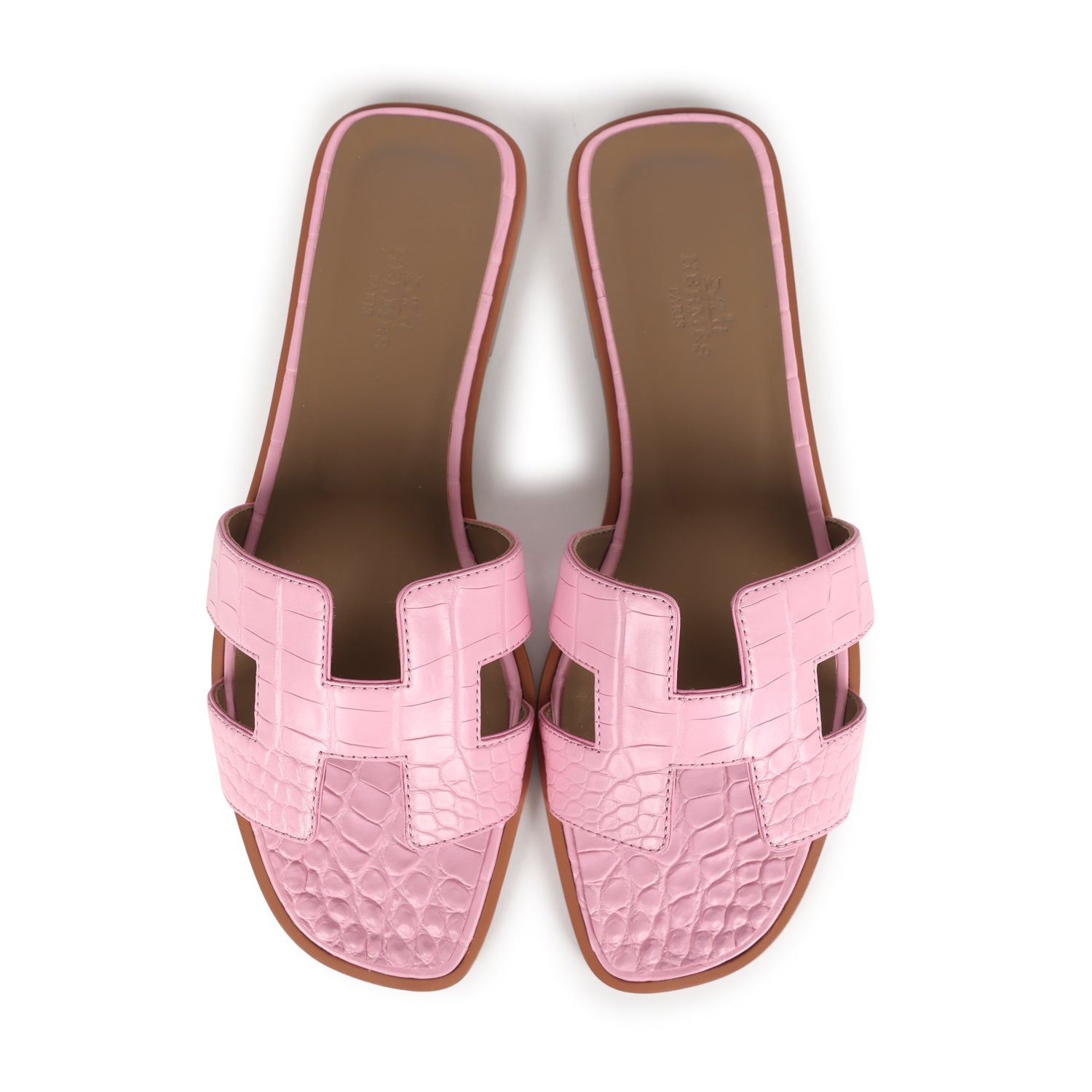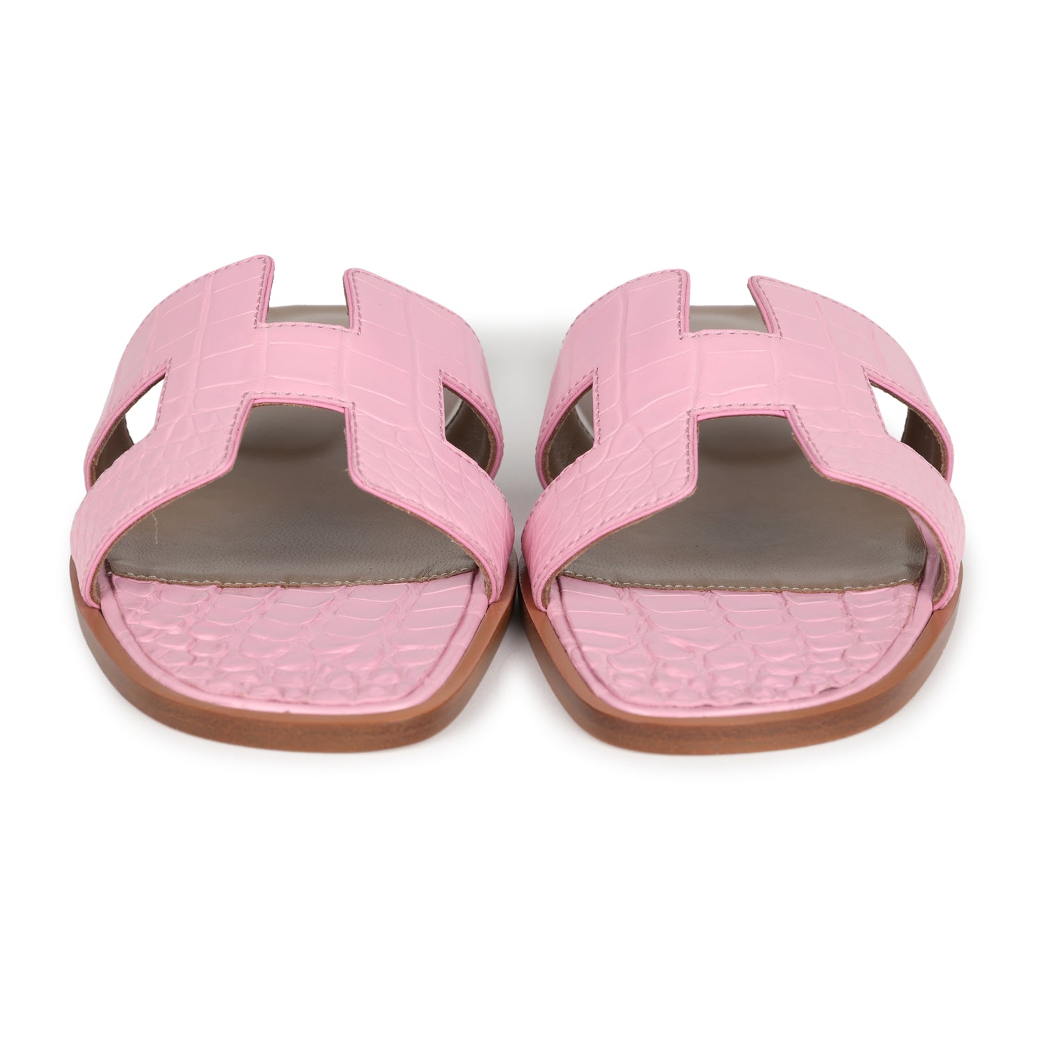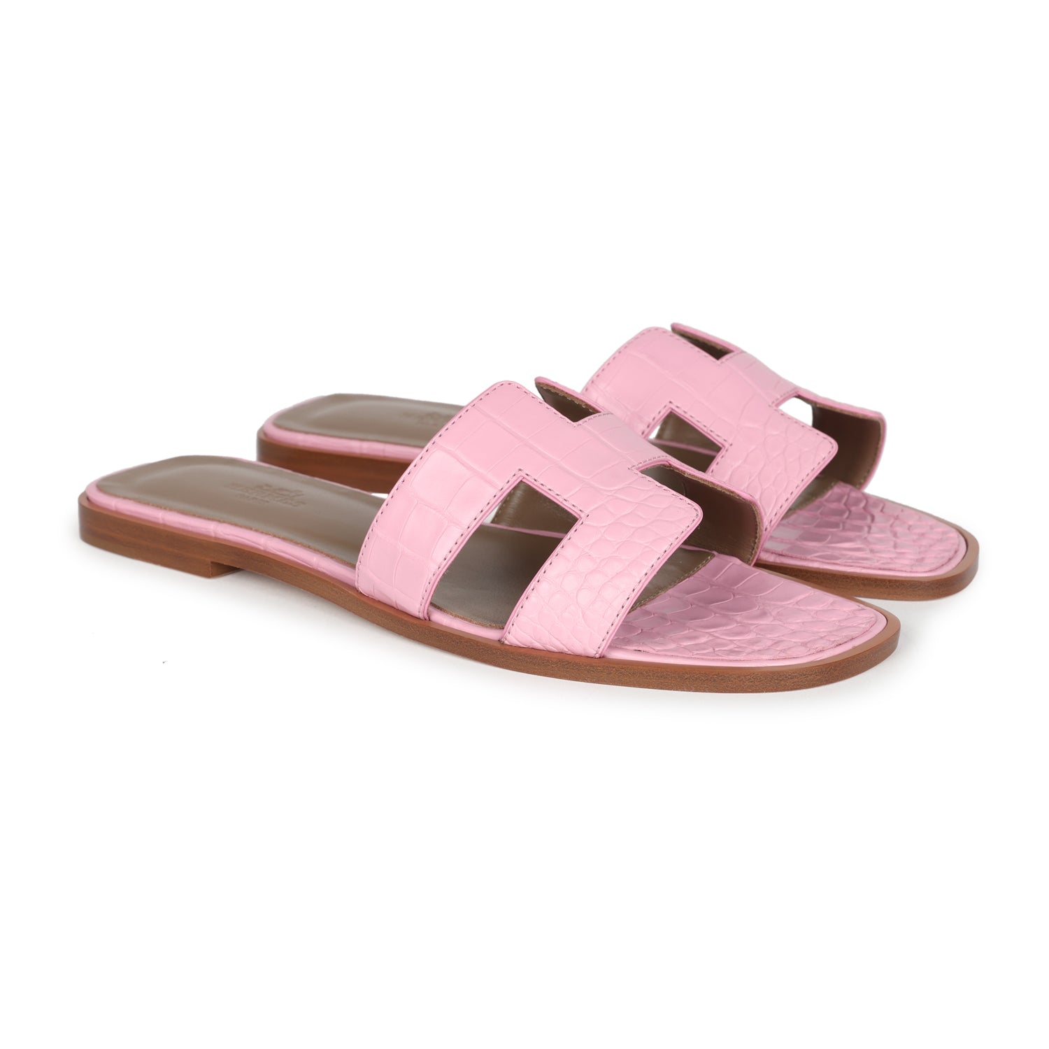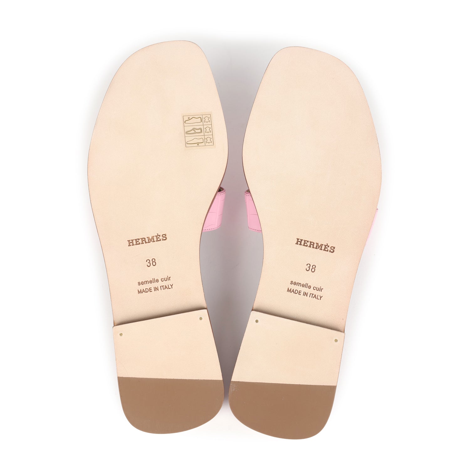 Hermes Oran Sandals Bubblegum Matte Alligator 38 EU