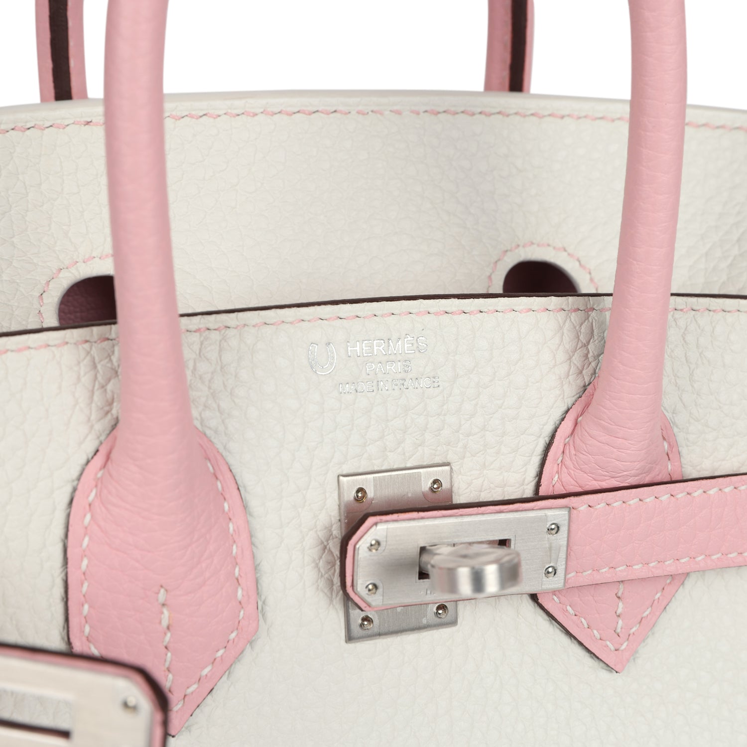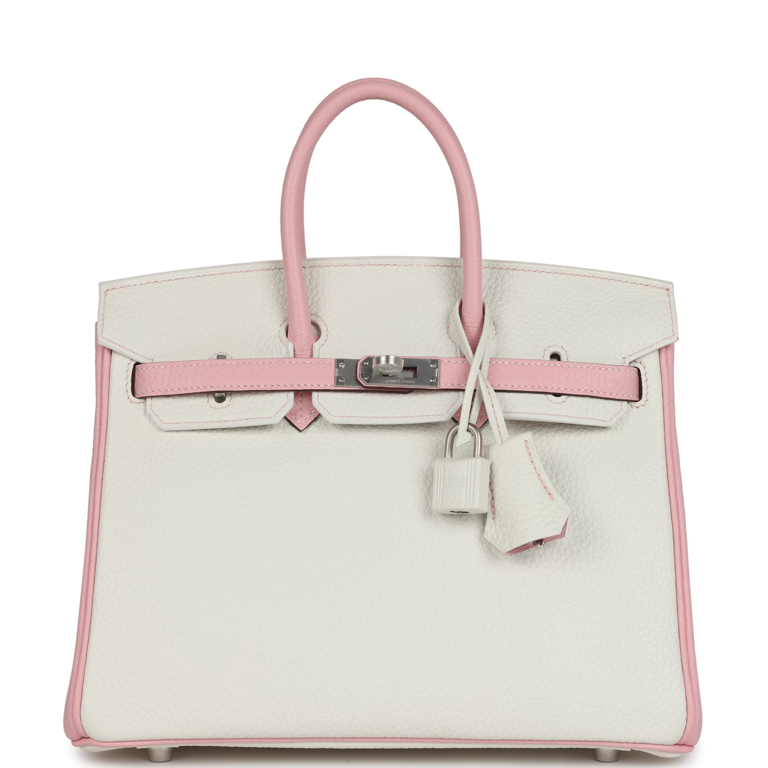 Hermes Special Order (HSS) Birkin 25 Rose Sakura and White Clemence Brushed Palladium Hardware