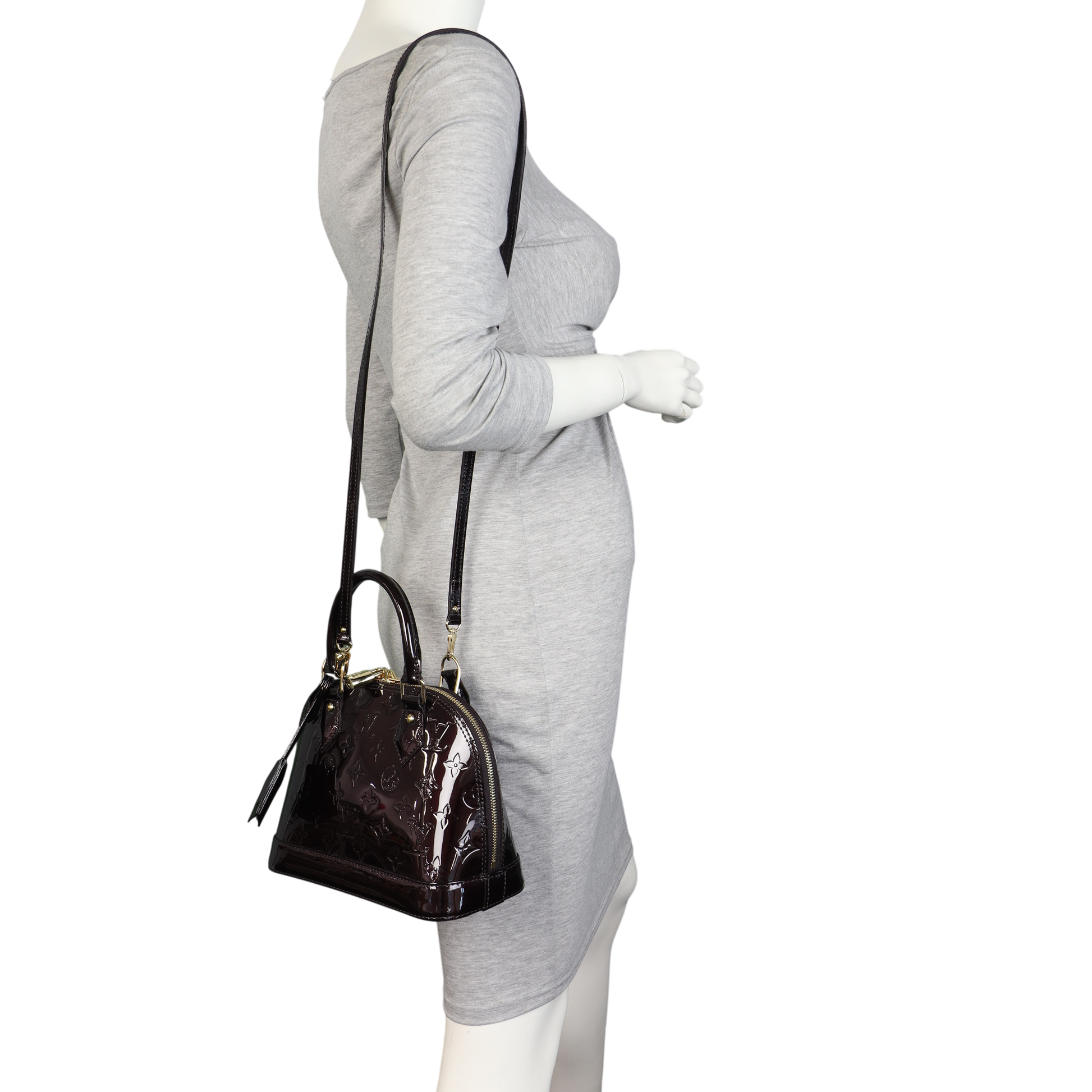 Embrace sophistication with the Louis Vuitton Alma BB Monogram Vernis bag, featuring the brand's signature monogram pattern. Its sleek design and petite proportions make it perfect for on-the-go elegance. Whether worn over the shoulder or carried by hand, this bag promises to elevate your look.