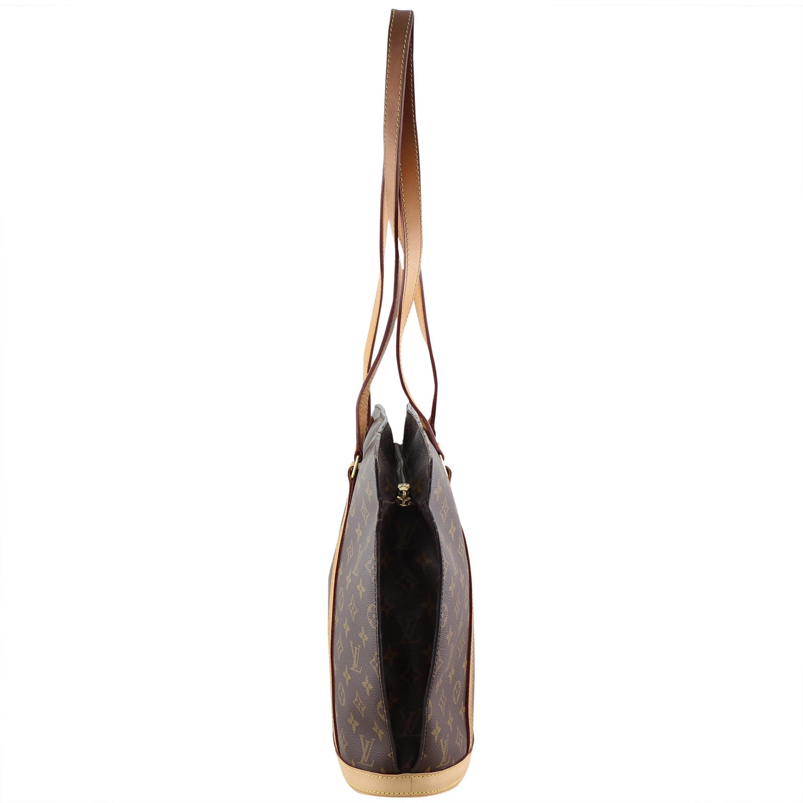 This Louis Vuitton Babylone is a roomy and durable tote that is ideal for everyday use. Carefully fashioned from the classic Louis Vuitton monogram canvas, this tote also features the signature vachetta cowhide leather trim and tall strap handles, a perfectly formed oval base, and gold hardware accents. The top zipper closure opens to a microfiber interior with enough pockets and slots to keep all your essentials neat and organized. A timeless bag perfect for the office or a day out shopping.