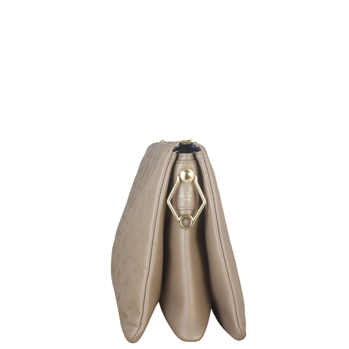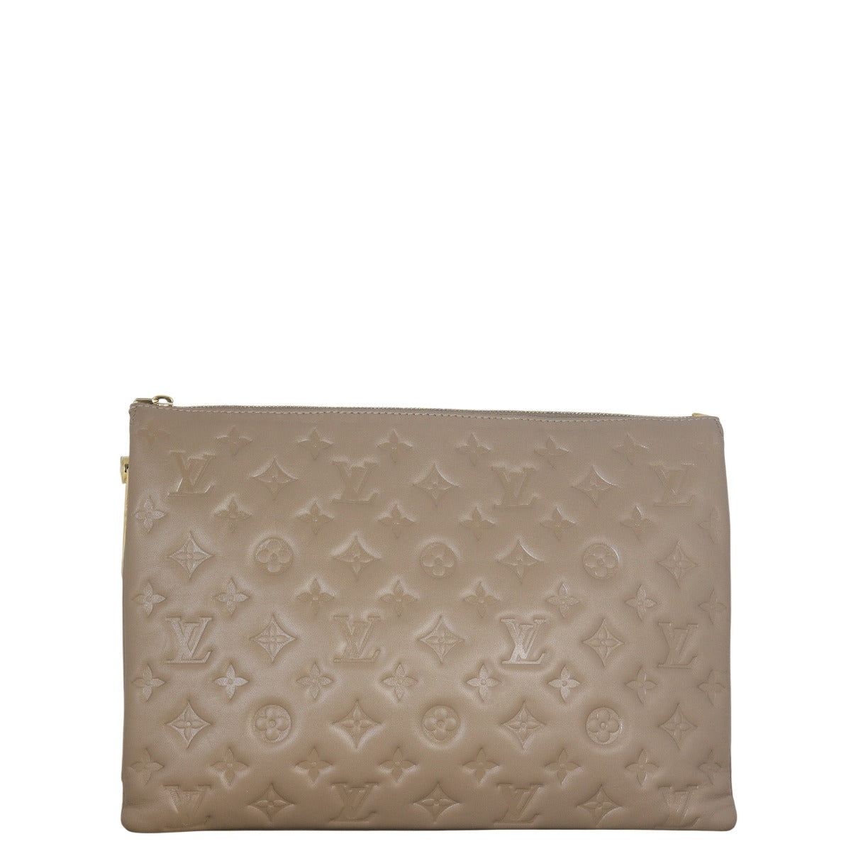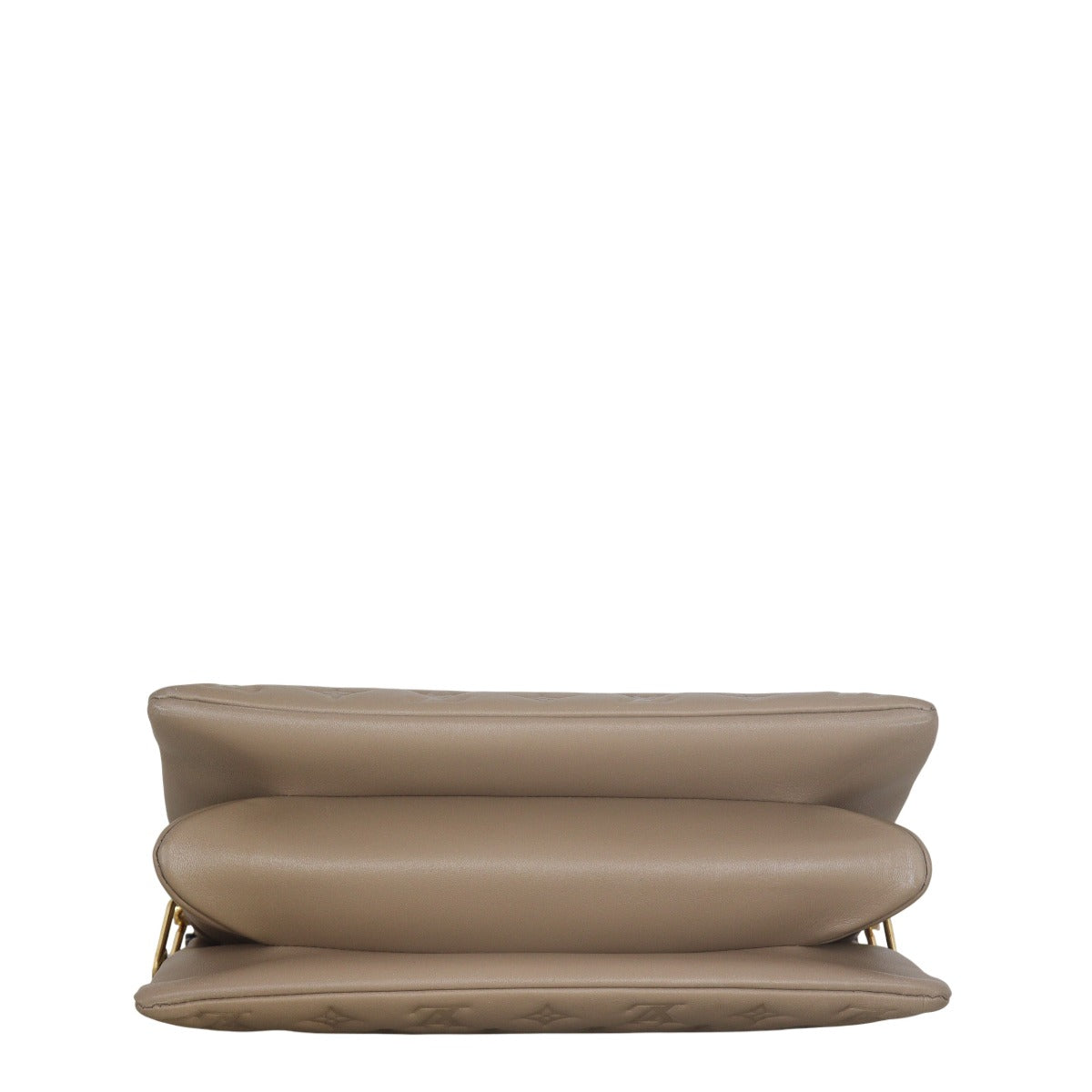 Colour/Material: Taupe monogram embossed puffy lambskin leather.