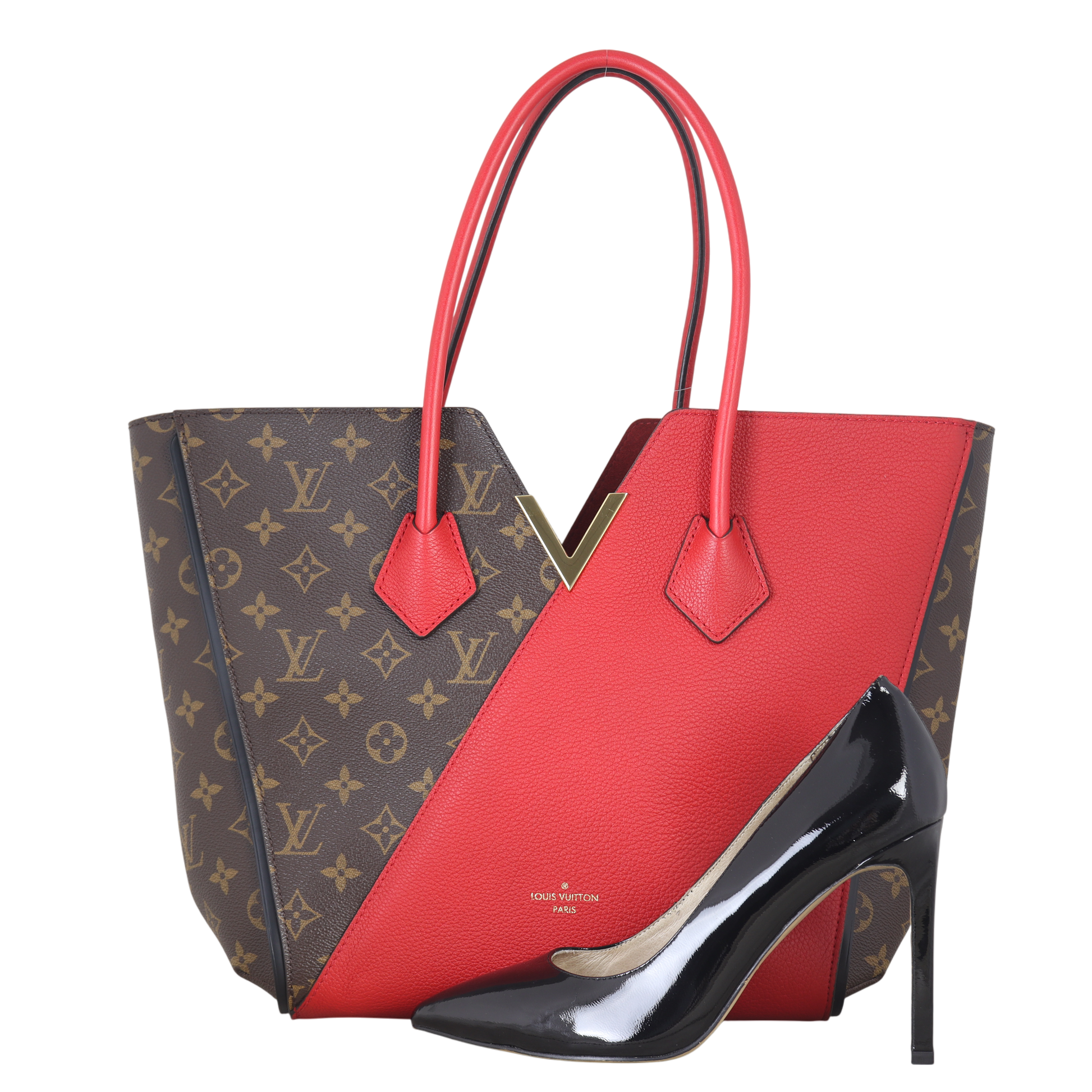 Colour/Material: Monogram coated canvas; red calfskin leather.