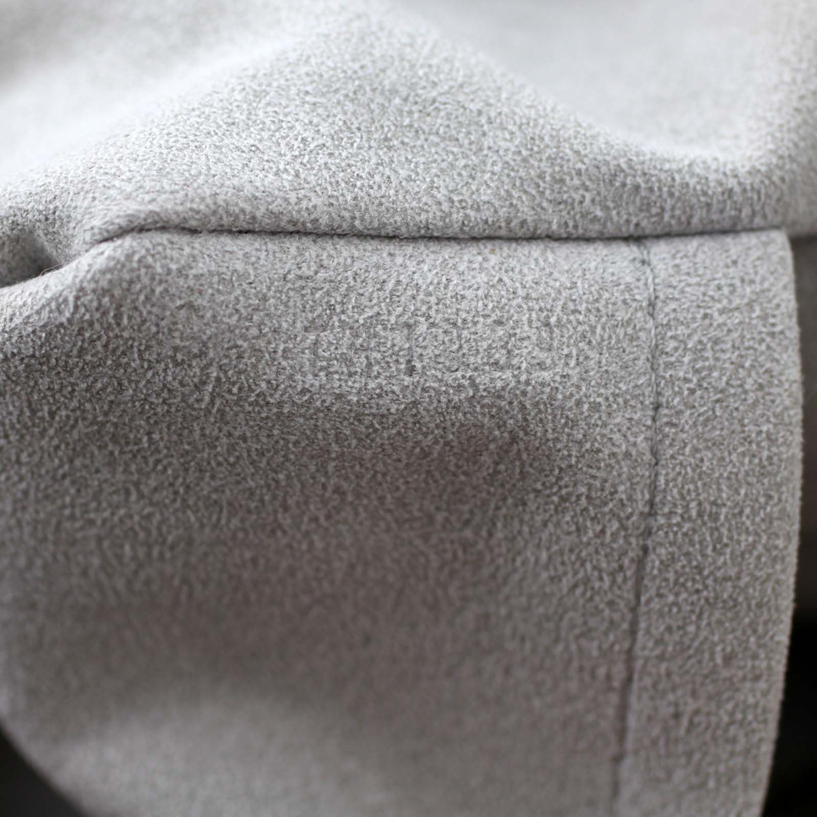 Features: Grey monogram denim textile exterior; embossed leather top handles, shoulder strap and trim; antiqued brass tone hardware including 4 x foot studs; top zip to main compartment; alcantara textile line interior includes 2 x slip pockets.
