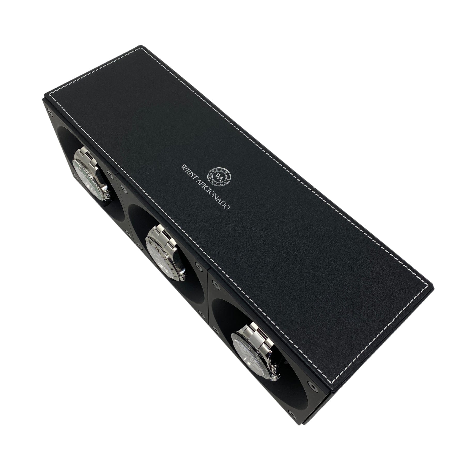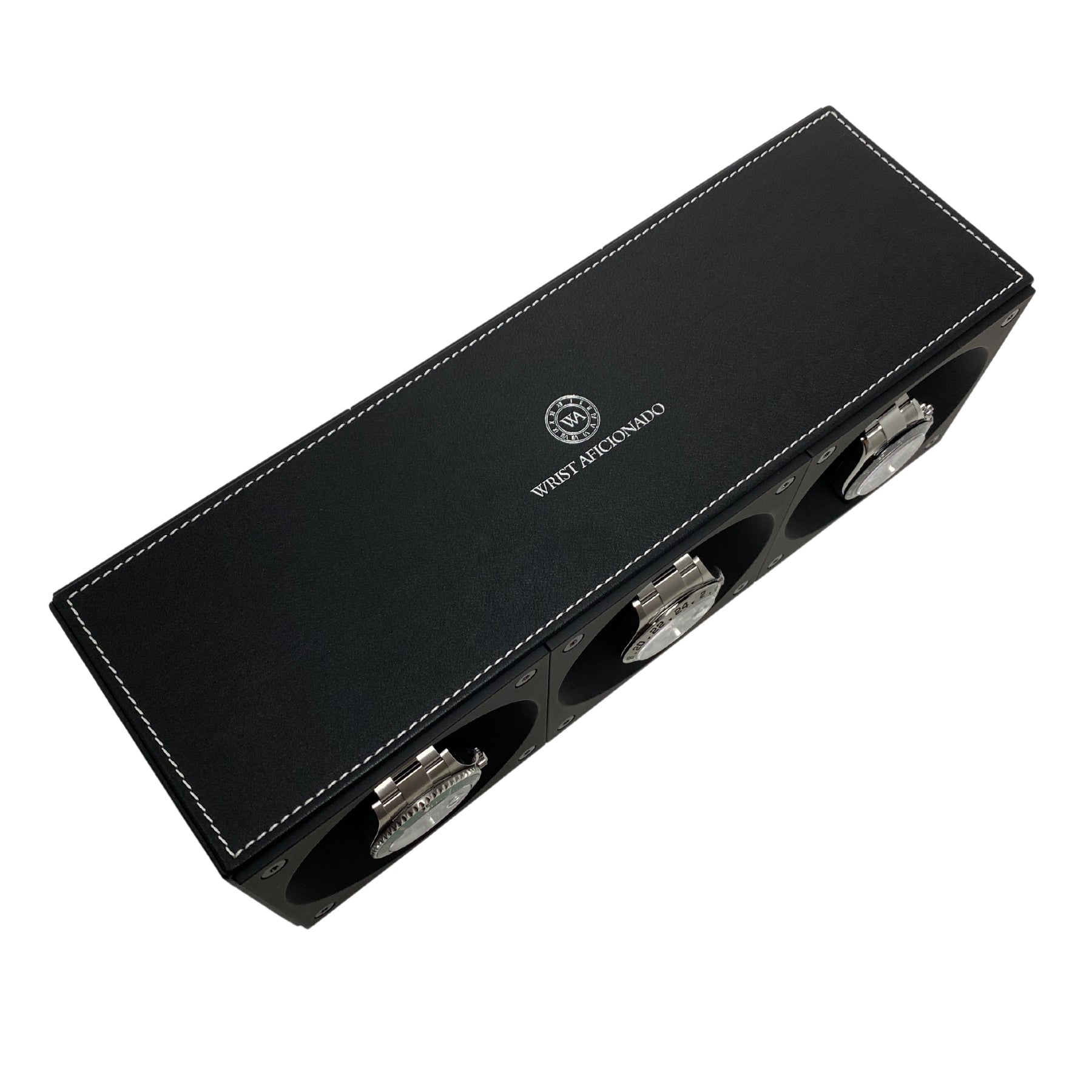 Masterbox Triple Black Leather Watch Winder with White Stitching (3 Watches)