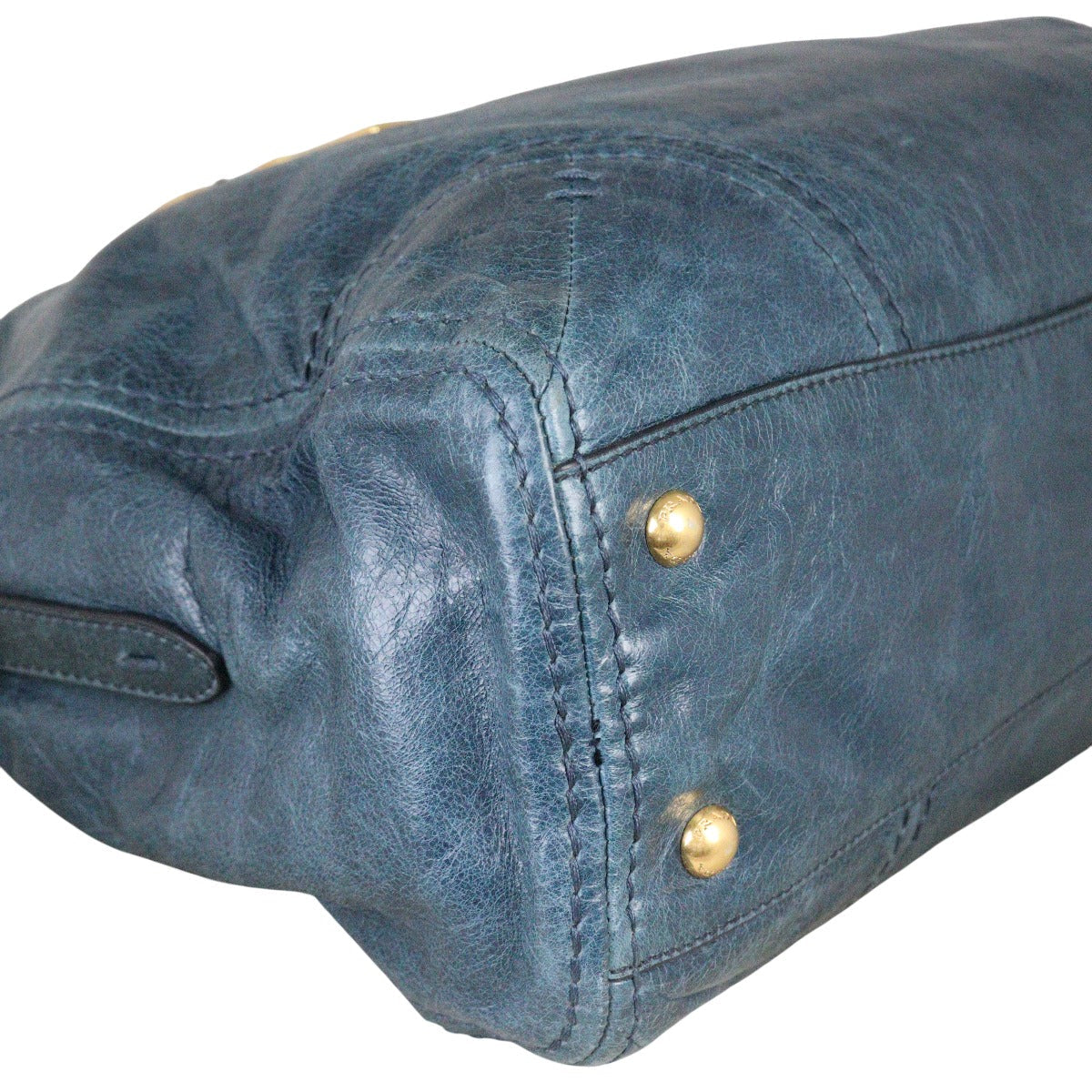 Colour/Material: Blue vitello shine calfskin leather.