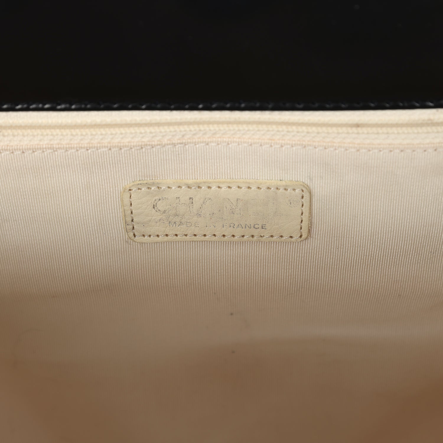 Condition: Pre-owned; Excellent - This bag retains its shape structure, There is no plastic on the hardware. The exterior leather has some small markings throughout and the fabric is discolored throughout. The interior fabric has some small staining and discoloration throughout. The Chanel Logo leather patch has faded and is discolored.