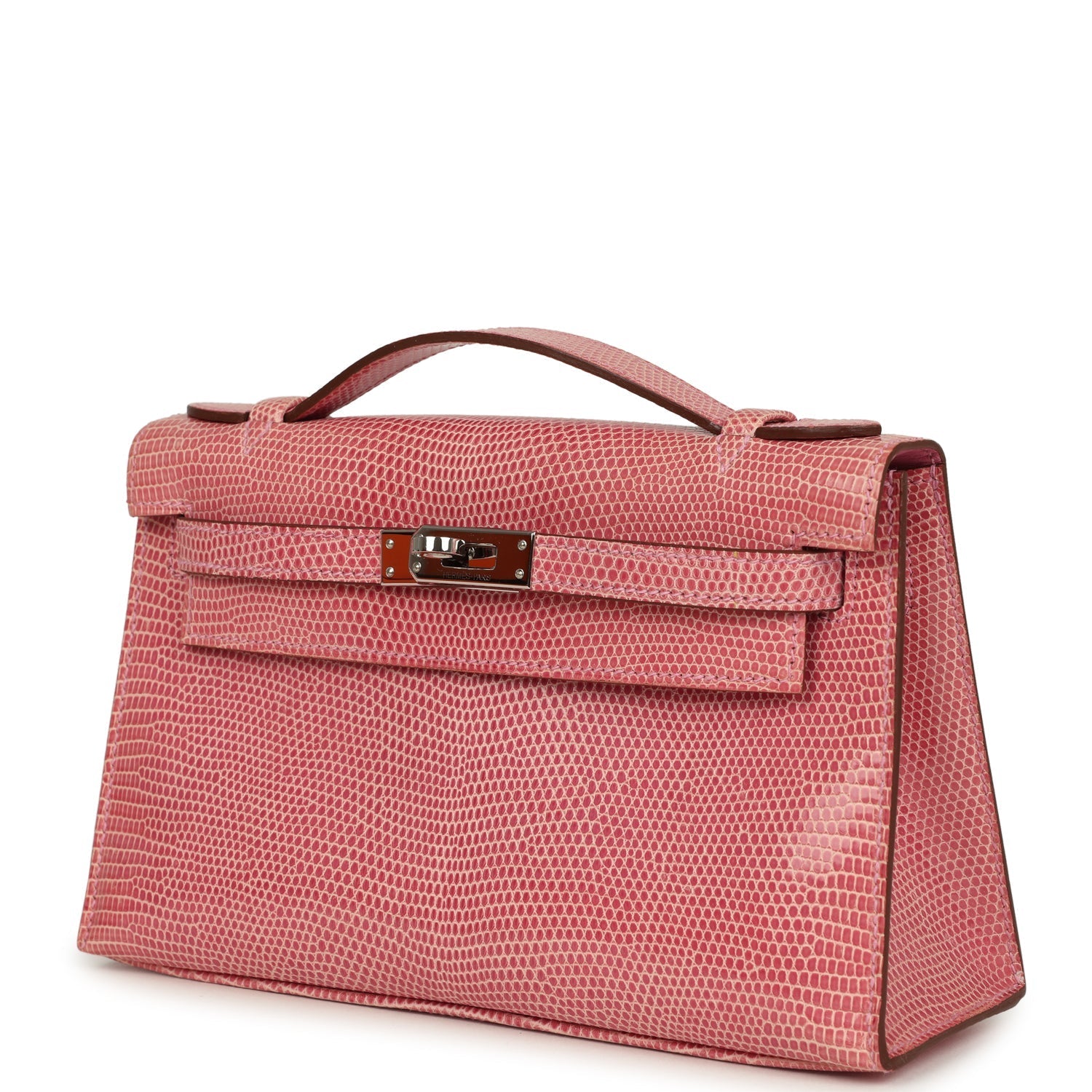 Pre-owned Hermes Kelly Pochette 5P Bubblegum Niloticus Lizard Palladium Hardware