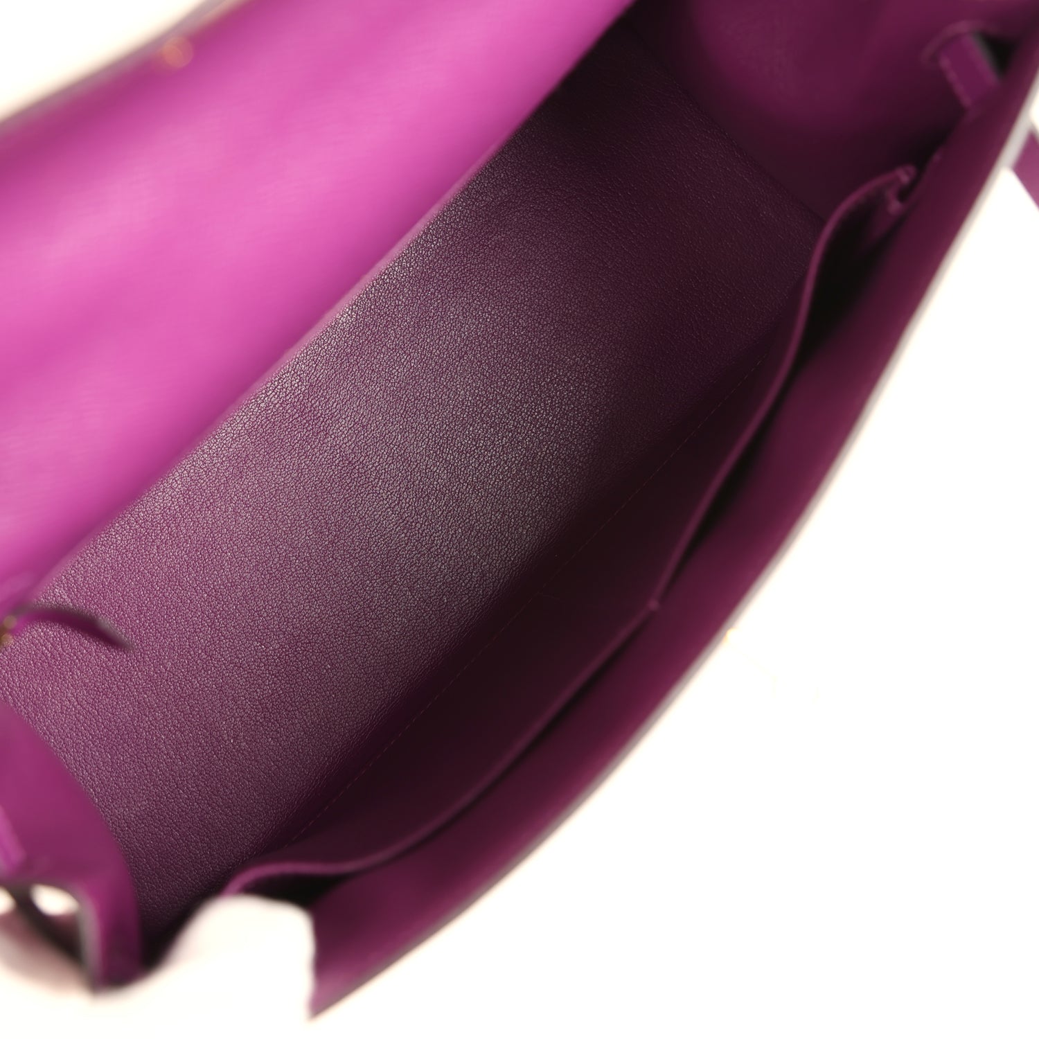 The interior is lined with Anemone chevre leather and has one zip pocket with an Hermes engraved pull and two open pockets on the opposite side.