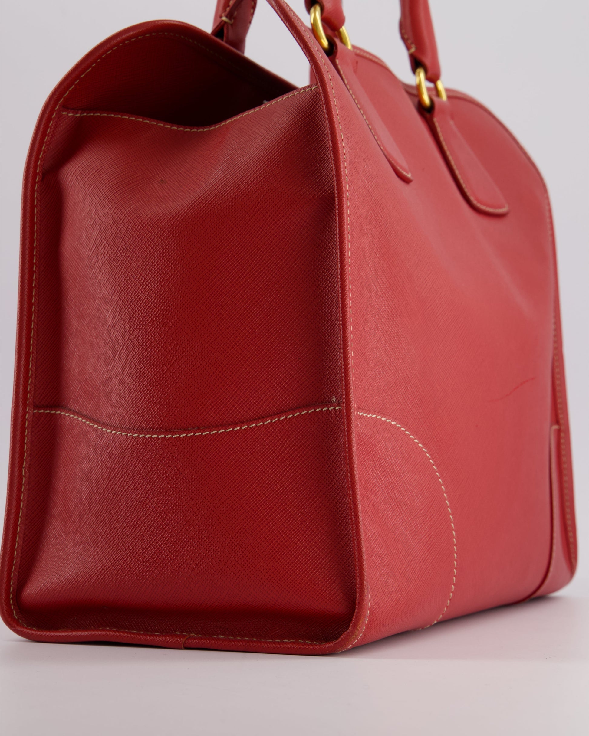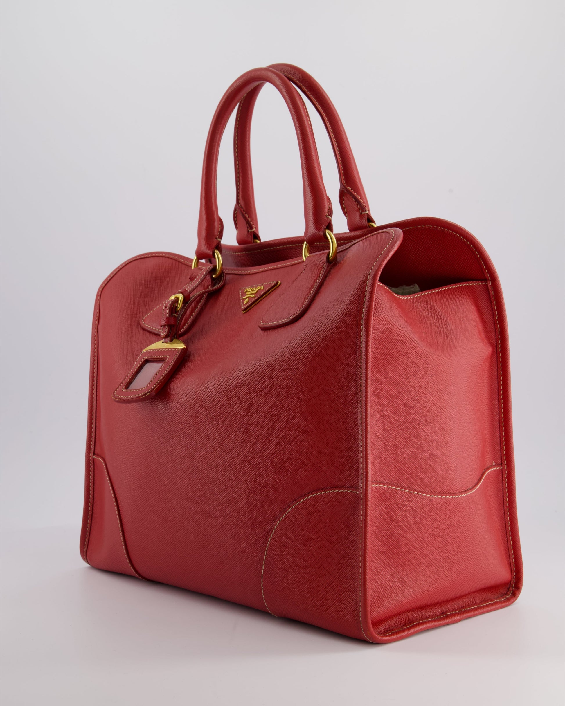 *RARE* Prada Fuoco Red Lux Parabole Tote Bag in Saffiano Leather with Gold Hardware