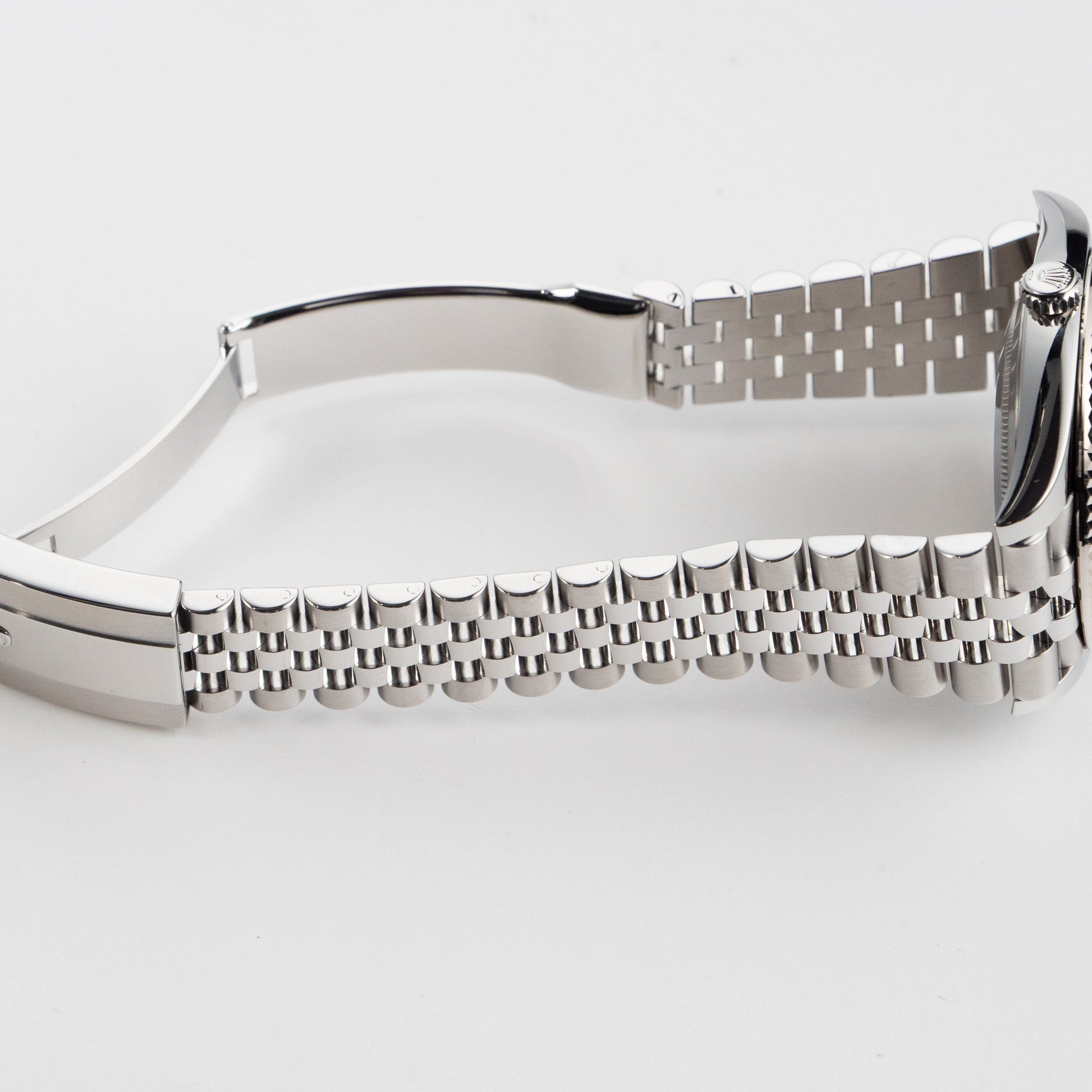 The Rolex Datejust 41 126334 brings one of the brand’s most versatile models into a refined contemporary form, crafted in stainless steel with a white gold fluted bezel and paired with the Jubilee bracelet. The sunburst slate dial adds understated depth and brushed texture, giving the watch a distinctive yet wearable modern identity. At 41 mm, it offers presence without excess, balancing luxury and everyday practicality.