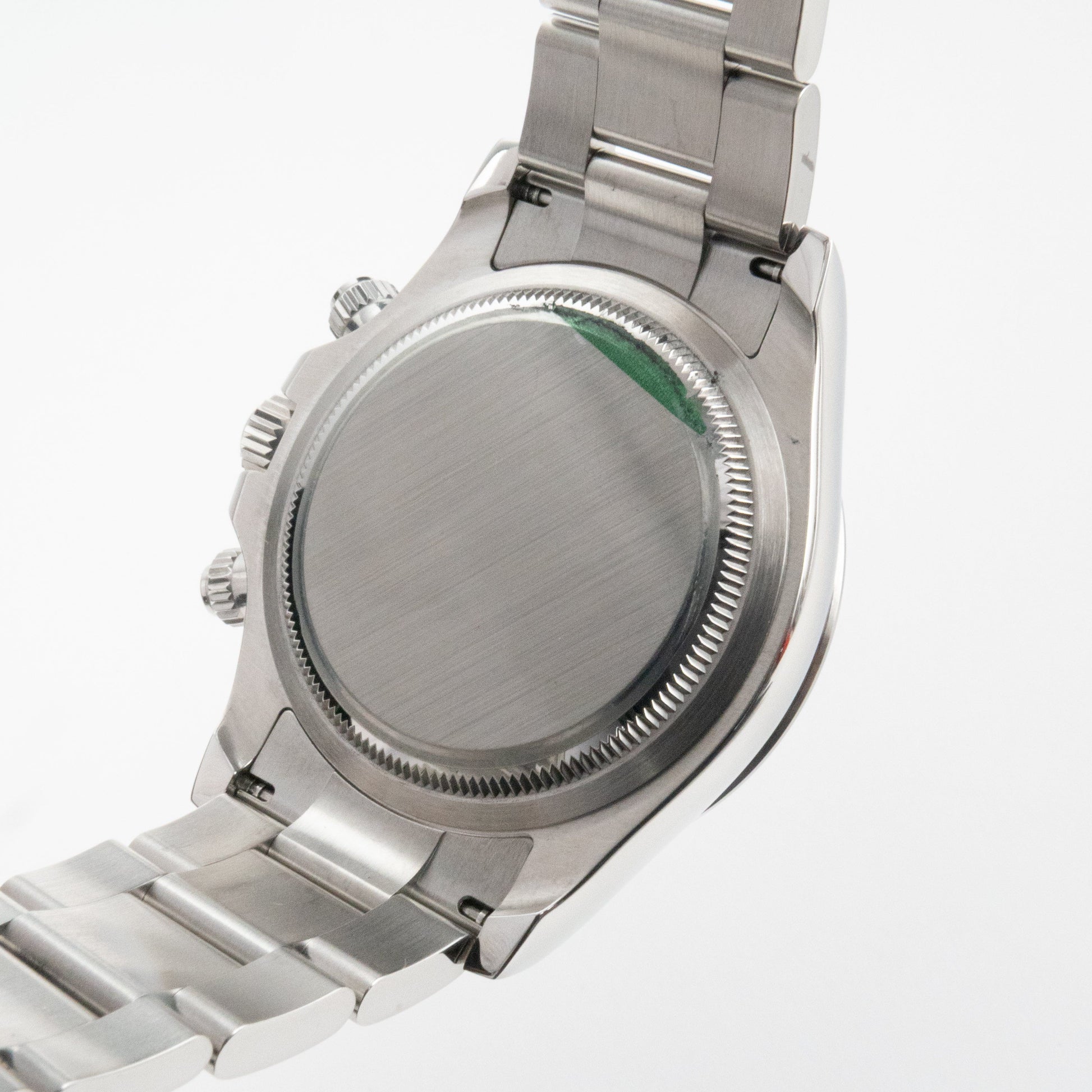 The Rolex Daytona 126500LN offers a seamless evolution of the legendary chronograph. Housing a 40 mm stainless steel Oyster case, it features a black Cerachrom bezel engraved with a tachymetric scale to enhance contrast and durability. The standout white dial—nicknamed “panda”—is paired with black chronograph counters, classic baton hour markers, and the iconic trio of subdials for meticulously balanced legibility and aesthetic symmetry.