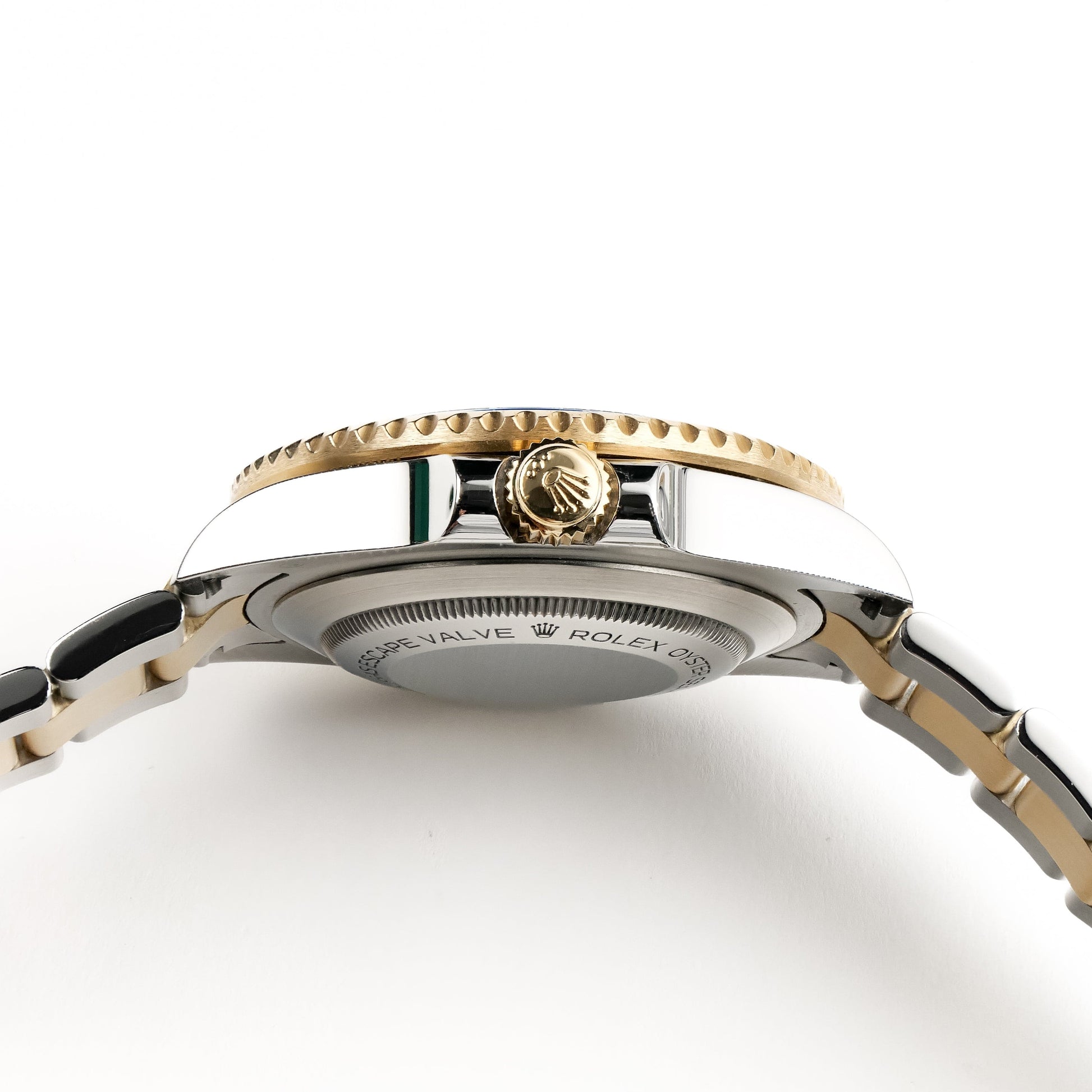 The Rolex Sea-Dweller 126603 “Two-Tone” marries deep-sea capability with refined elegance. Its 43 mm Oyster case combines corrosion-resistant 904L steel with 18k yellow gold accents—most notably the unidirectional bezel and winding crown. The black dial features bold luminescent hour markers and hands engineered for underwater legibility, while the date window at 3 o’clock retains the Sea-Dweller’s tool-watch heritage. Rated to 1,220 m water resistance, the 126603 retains serious diving capability yet delivers a more elegant demeanor thanks to its gold elements.