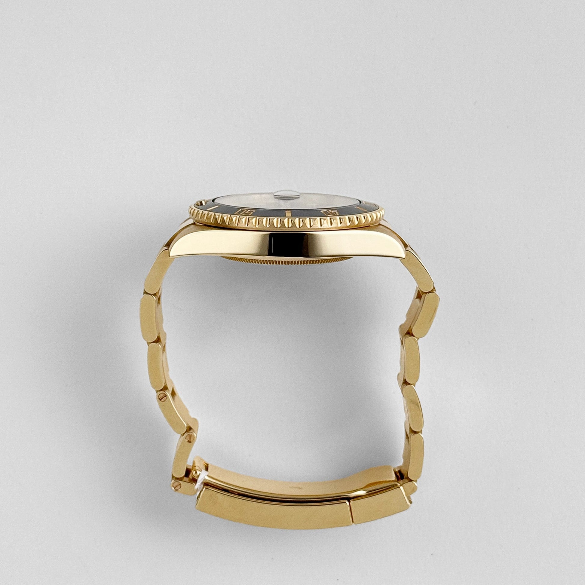 The dial features luminous hour markers and hands, ensuring readability in low-light conditions, with a Cyclops lens over the date window at 3 o’clock for easy viewing. The Oyster bracelet, also in yellow gold, features a Glidelock extension system, allowing adjustments to fit over a wetsuit.