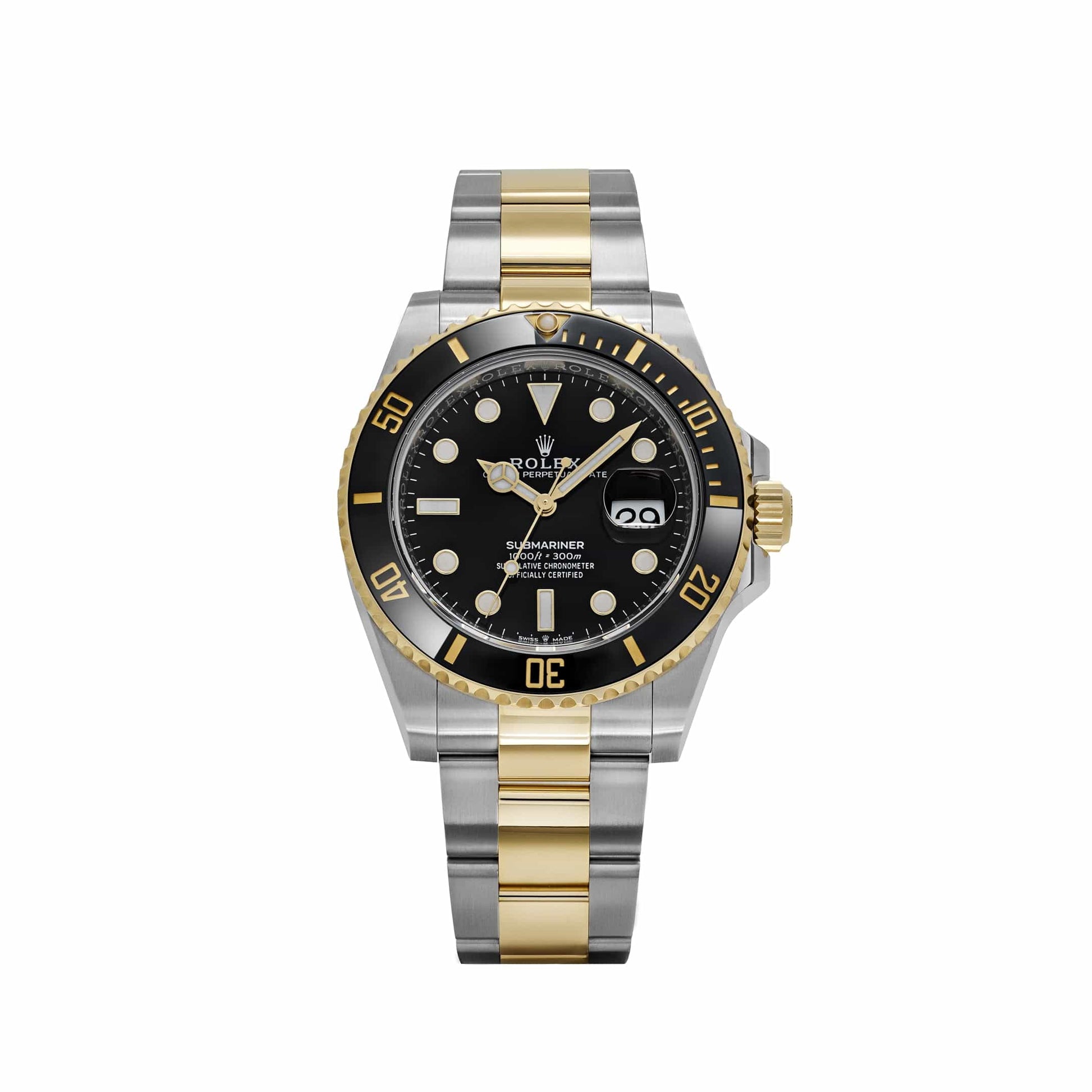 The black dial enhances the watch’s classic aesthetic, with bold luminous hour markers and hands for optimal legibility in low-light conditions. The date window at 3 o’clock, magnified by Rolex’s iconic Cyclops lens, ensures practical functionality. Paired with the two-tone Oyster bracelet, which combines polished yellow gold center links with steel outer links, the Submariner Date 126613LN delivers both durability and refinement.